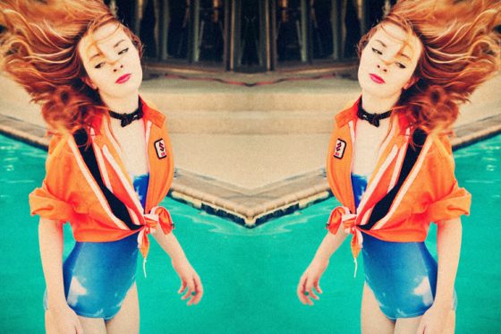 I ordered an anime swimsuit from Black Milk a few weeks ago and they were kind enough to send another along too–I love the clouds as much as my anime swimsuit. Worn with a Suzuki jacket I got at a vintage store (that was right next door to a motorcycle shop) in Tulsa and a 70s rhinestone bowtie necklace.