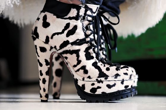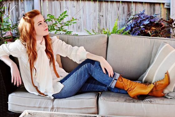 Wearing vintage patched Levi's (one of my most prized possessions) with The Dress & Co blouse and leather suspenders I got in Japan. The lace up booties are Prada 2006.