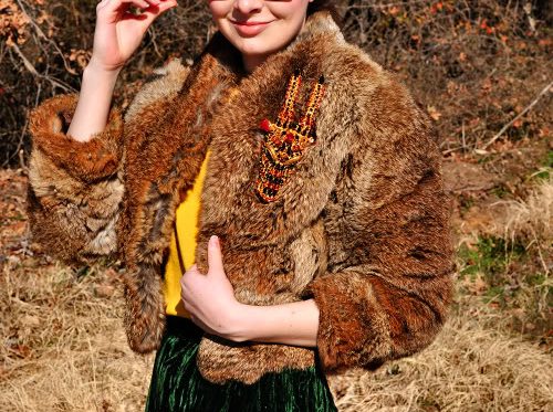 My antelope friend is worn on a vintage cropped fur jacket, a vintage Yves Saint Laurent green velvet wrap skirt, Ray Ban glasses, Rugby Ralph Lauren Argyle socks, and my Proenza Schouler lace-up booties.