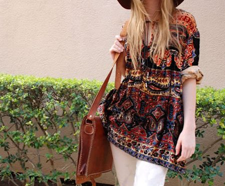 Wearing American Apparel floppy hat, tie dye jeans from Madewell, a bag I got in Morrocco, vintage top from Feathers Vintage and Prada Spring 06 booties.