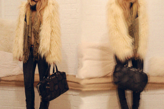 Wearing jeans from VOD, Balenciaga booties, shearling and suede Richard Chai jacket, a Junya Watanabe shirt I'm borrowing from mom, and major bedhead…