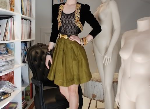 The silk scarf is from J. Crew, the bangles are random junk, and the bag is Prada.