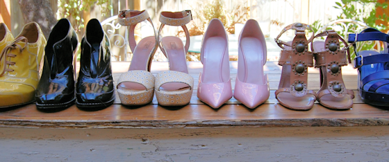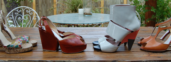 From left to right: My challenge shoes: the flowered Biba sandals, and chunky peeptoe Marigelas.