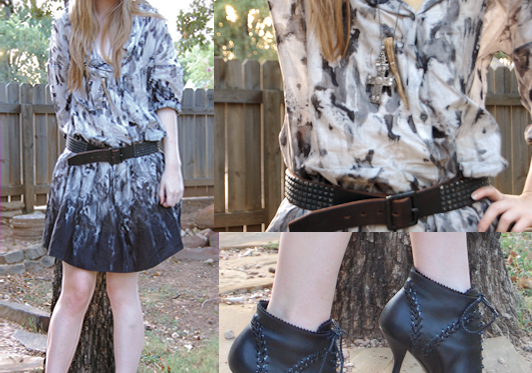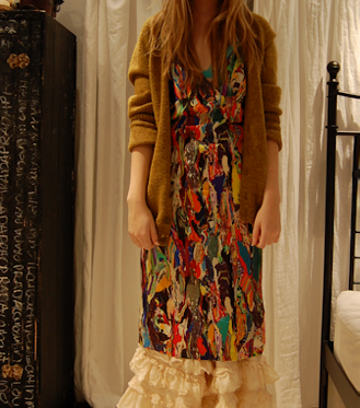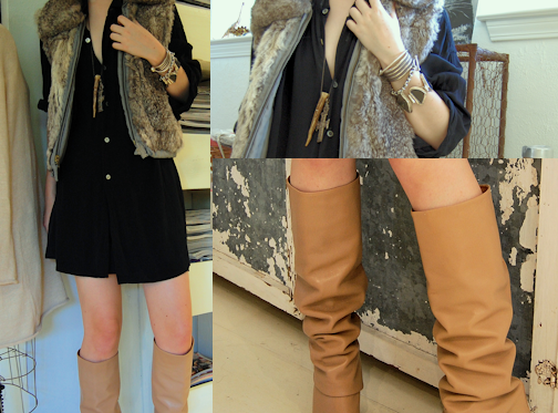 Before I embarked on the shoe challenge (which began today) I wanted to wear this vintage Carolina Herrera dress that came in the mail this week with my Balenciaga ankle boots-photographed in front of the wreckage of my sisters bathroom (installing new counters)