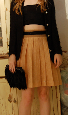 Tonight I went to go see the new Batman movie-I’m wearing a vintage Adolfo wool cardigan that is part of a skirt suit, a black tube top, Miu Miu skirt, and my trusty Dries van noten buckle slingbacks. The feather clutch is a crappy purse I got at the thrift store last week-I just snipped the straps off of it.