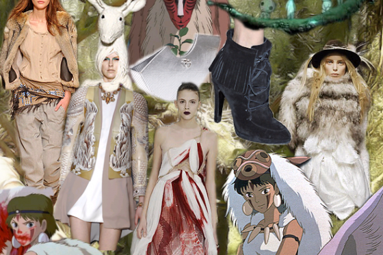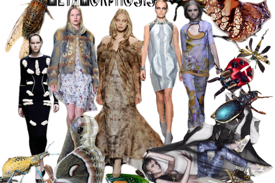 The frothy fur at Chloe made me think of nothing other than the downy wings of a luna moth, complete with it’s spots and tufts of hair. I spotted similarly wing-like patterning at Prada-don’t the marbled designs of the tunic and the transparency remind you of butterflies? Very dreamy. I also loved the strange cutouts on Marios Scwab’s wobble dress this season. The gathered fabric peeping out of these perforations immiediatley brought to mind-and this may sound disgusting-insect larvae…but in a totally awesome sci-fi way. And of course you can’t forget the whimsical shoes and pins at Miu Miu this spring…check out the sandal with the beetle on it! A little far out for me, but I would still love one of those dragonfly pins.