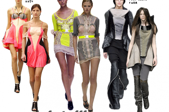 The closing dress at Nina Ricci was ethereal and evoked many different emotional responses. It featured the print of a chrysalis . I love that Theyskens could take something from nature so bizarre (the shell of a cicada always makes me wonder if they’re not the fetuses of alien spawn) and make it both wearable and beautiful. The model’s bare shoulders and the volumuminous sleeves remind one of the actual process of metamorphosis-the pretty butterfly (aka Tanya) coming out of it’s shell.