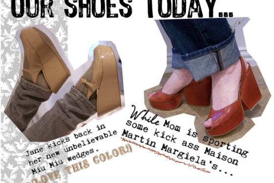 We are Judy and Jane Aldridge, mother-daughter shoe whores looking for an outlet to explore every avenue of our obsession. Mom (or Judy) is 44 and a former fashion insider, now staying at home taking care of her two daughters and working on and up and coming independent project. Jane, age 15, is a student and fashion obsessor living in suburban utopia and sea of soccer moms and Hollister hoochies, IE: living hell.