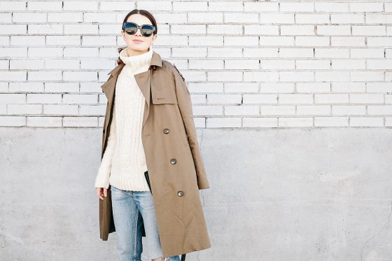 Perfect uniform outfit for me right here. Trench coat, cable knit sweater, and killer minimal heels! These are Stuart Weitzman's new NEARLYNUDE sandals. Perfect everyday sandal, I want it in …