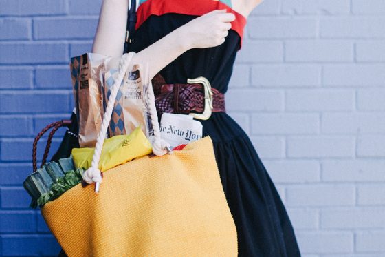 I am so inspired by the poppy stripes of color in this 80s dress! I was at the thrift store and found this yellow rope handle tote to match it. Perfect for tucking my groceries into on a weekend …