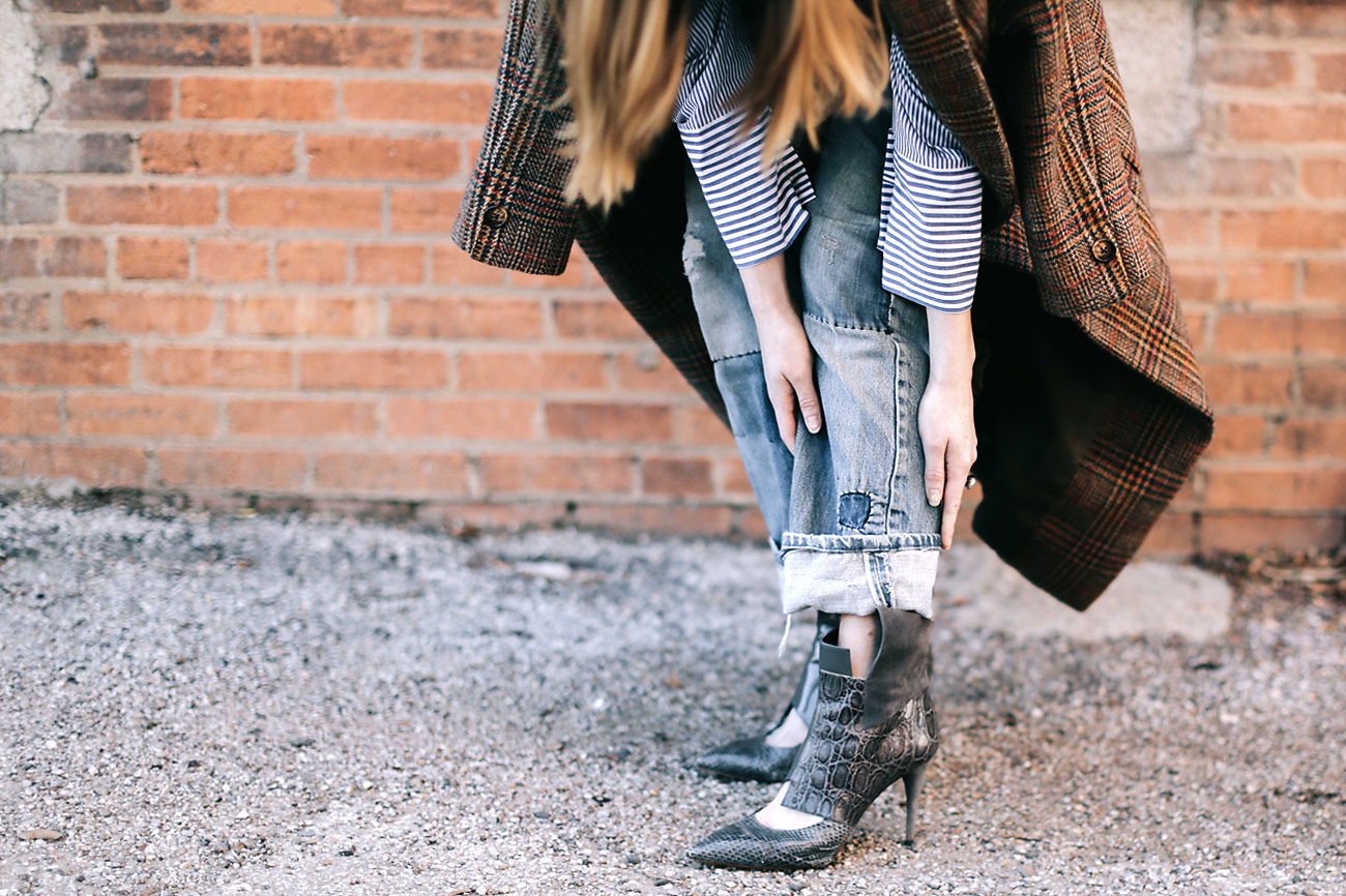 Those jeans are super unique and I love how you made a statement with the plaid coat without going over the top :)