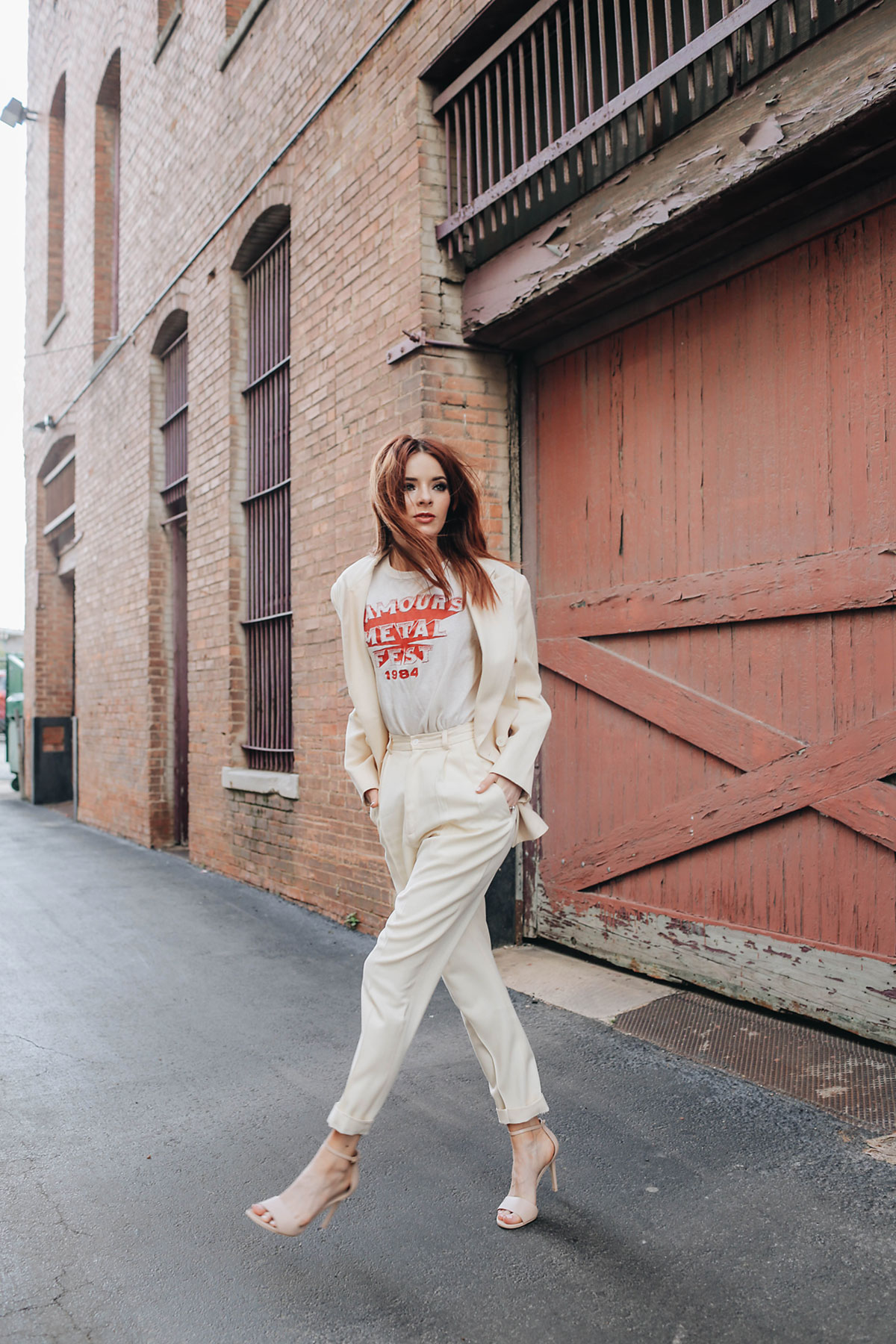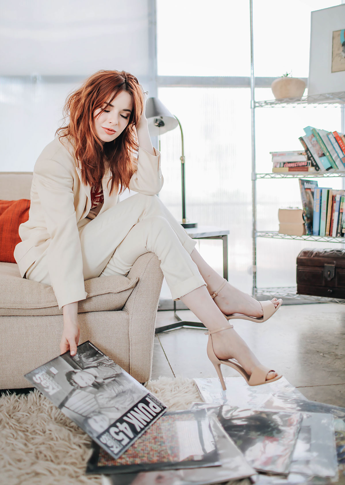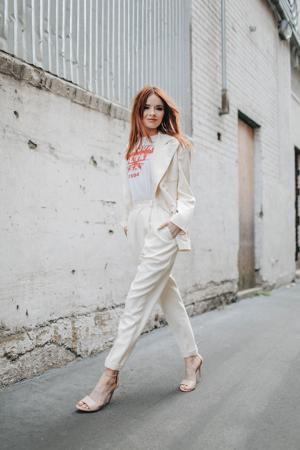 love how you paired a powersuit with these neutral sandals.