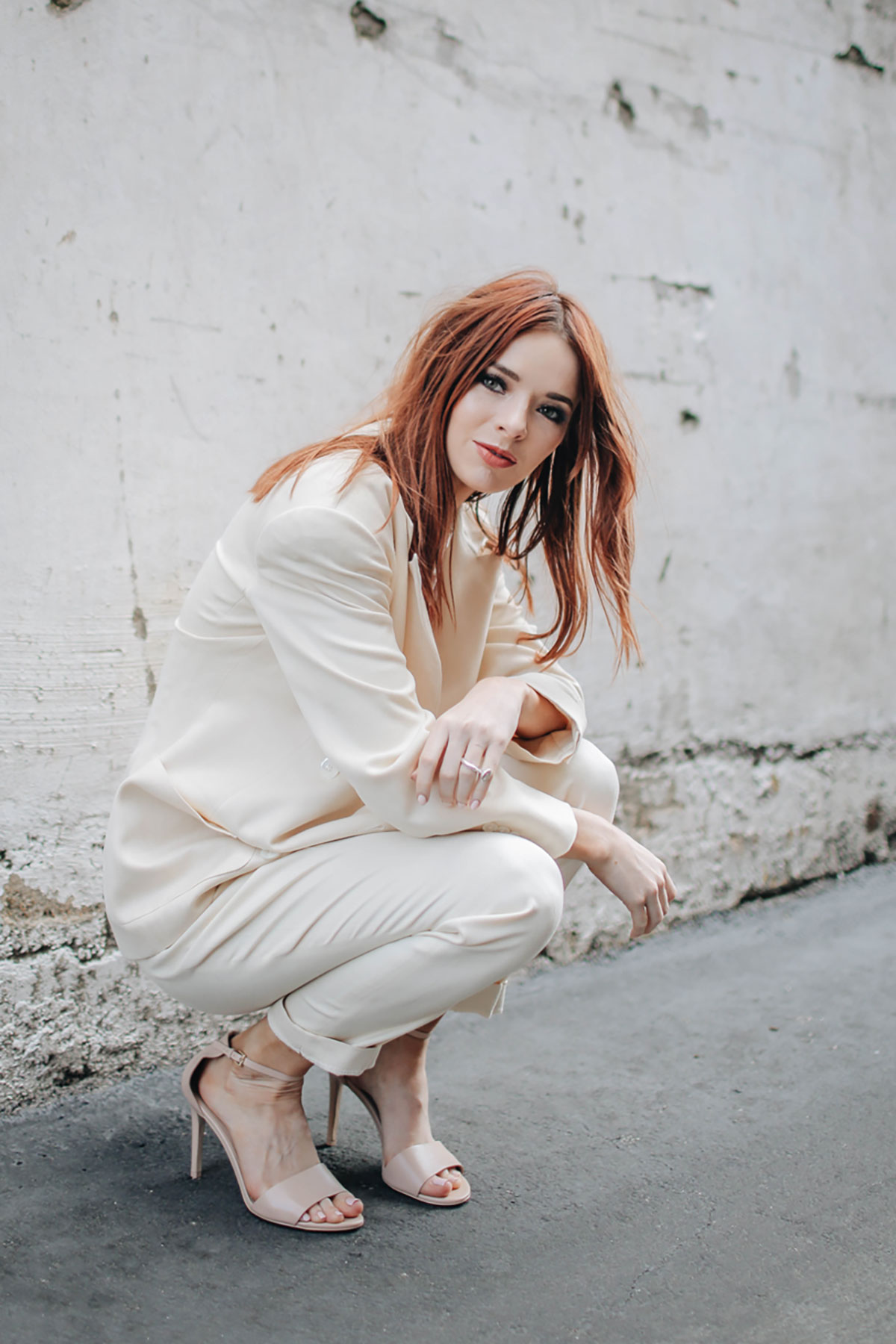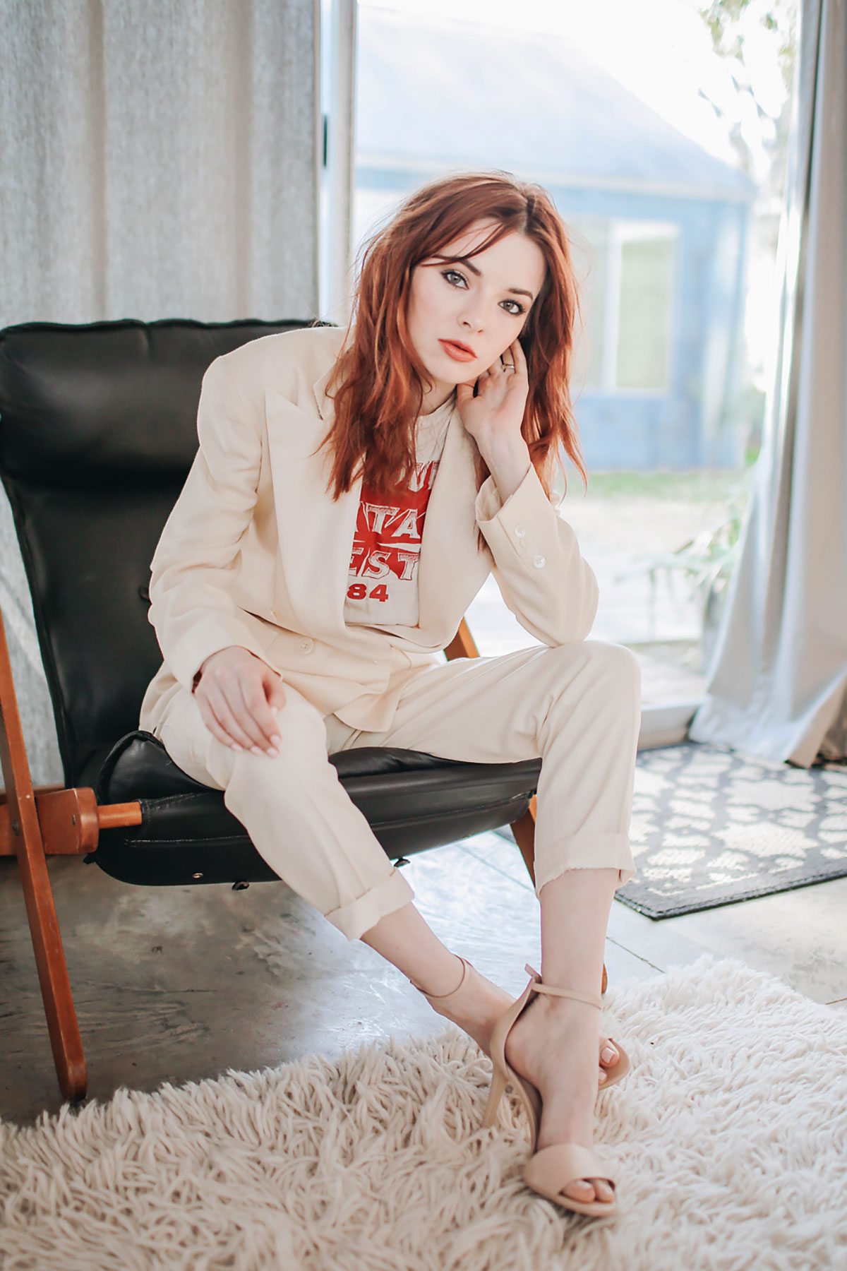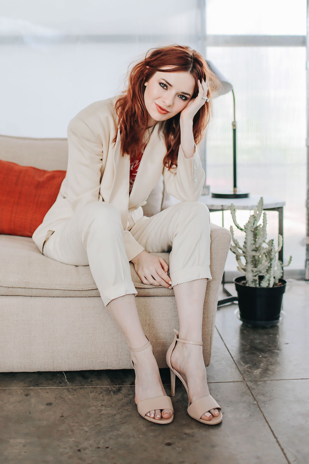 love how you paired a powersuit with these neutral sandals.