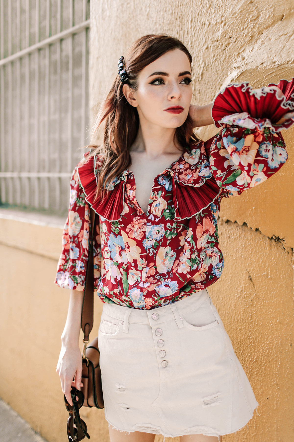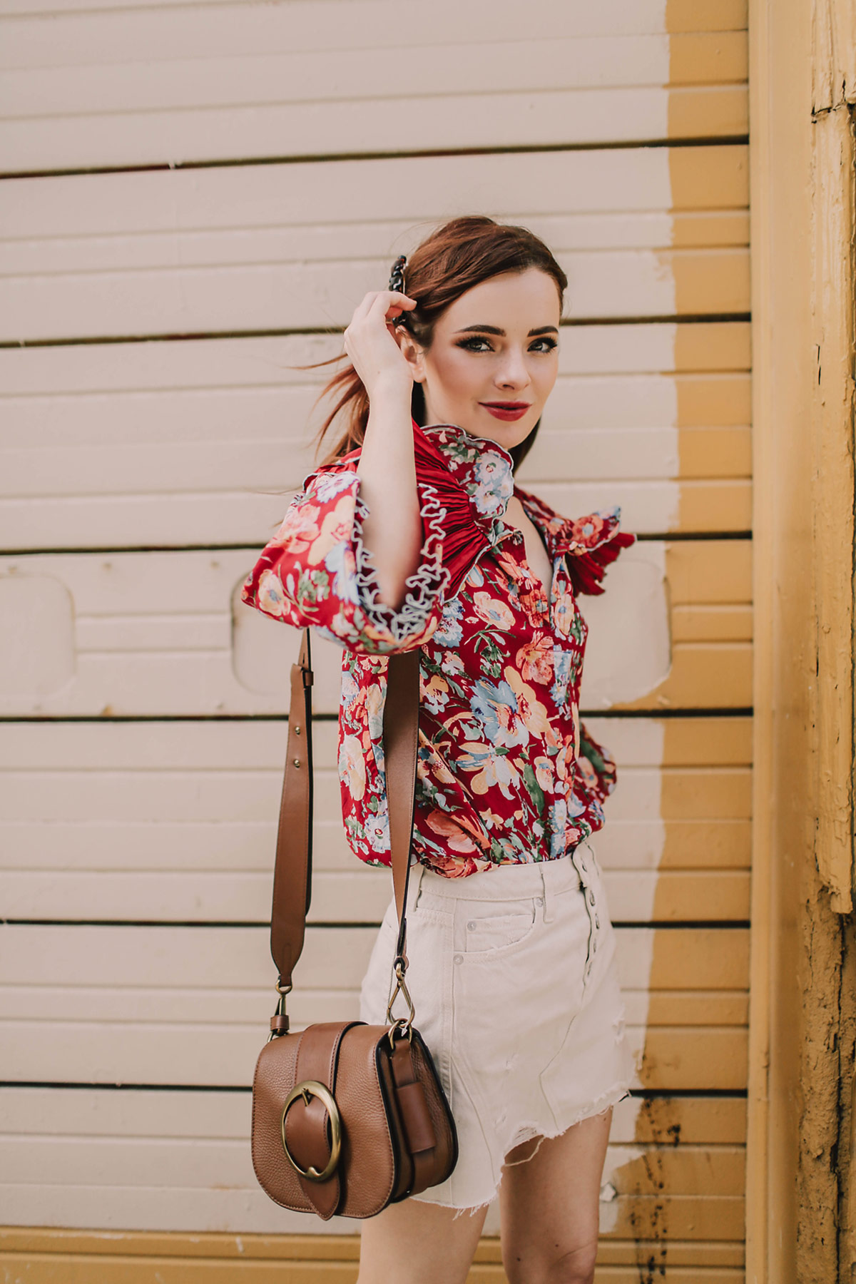 That blouse compliments your hair so nicely! Such a cute summer outfit