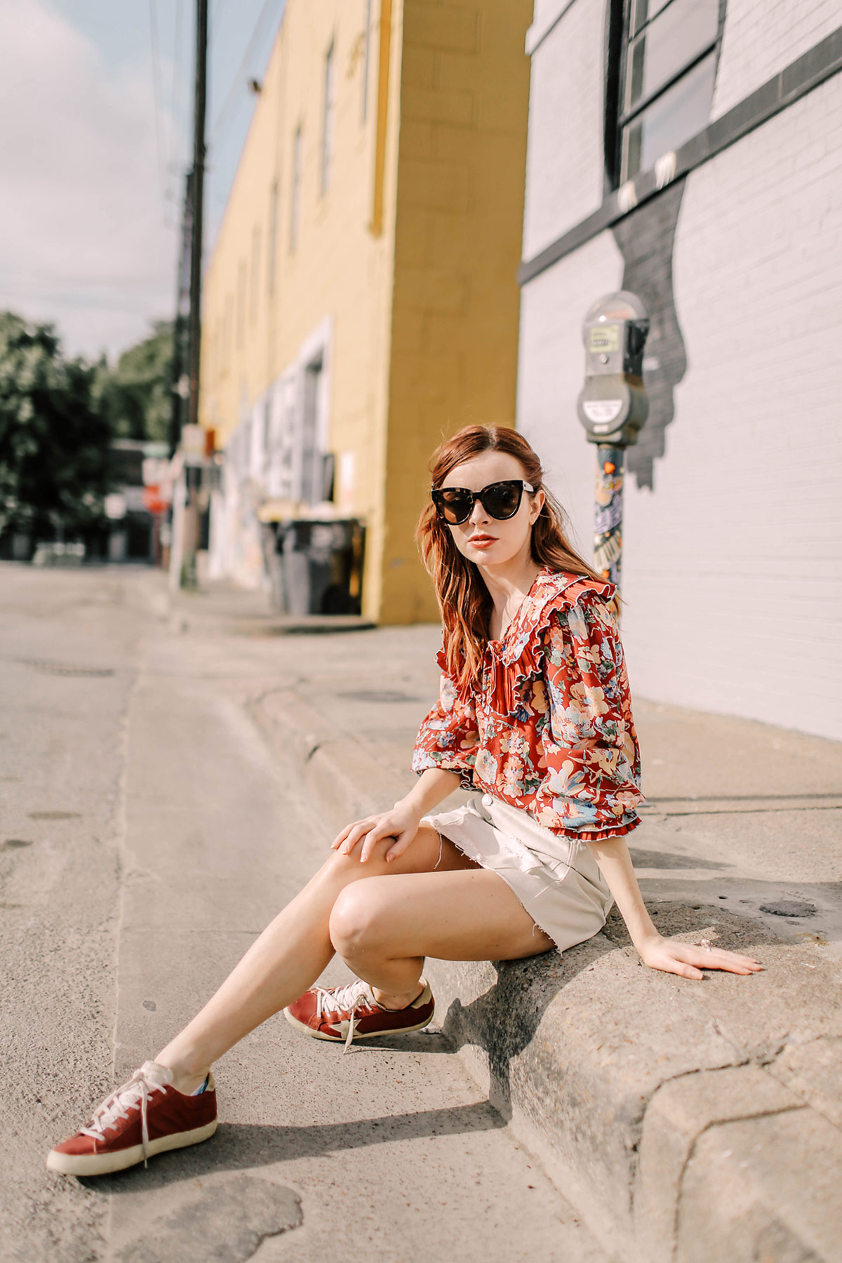 Great mix with this “simple” trendy short and a so elegant floral top! Beautiful and so stylish!