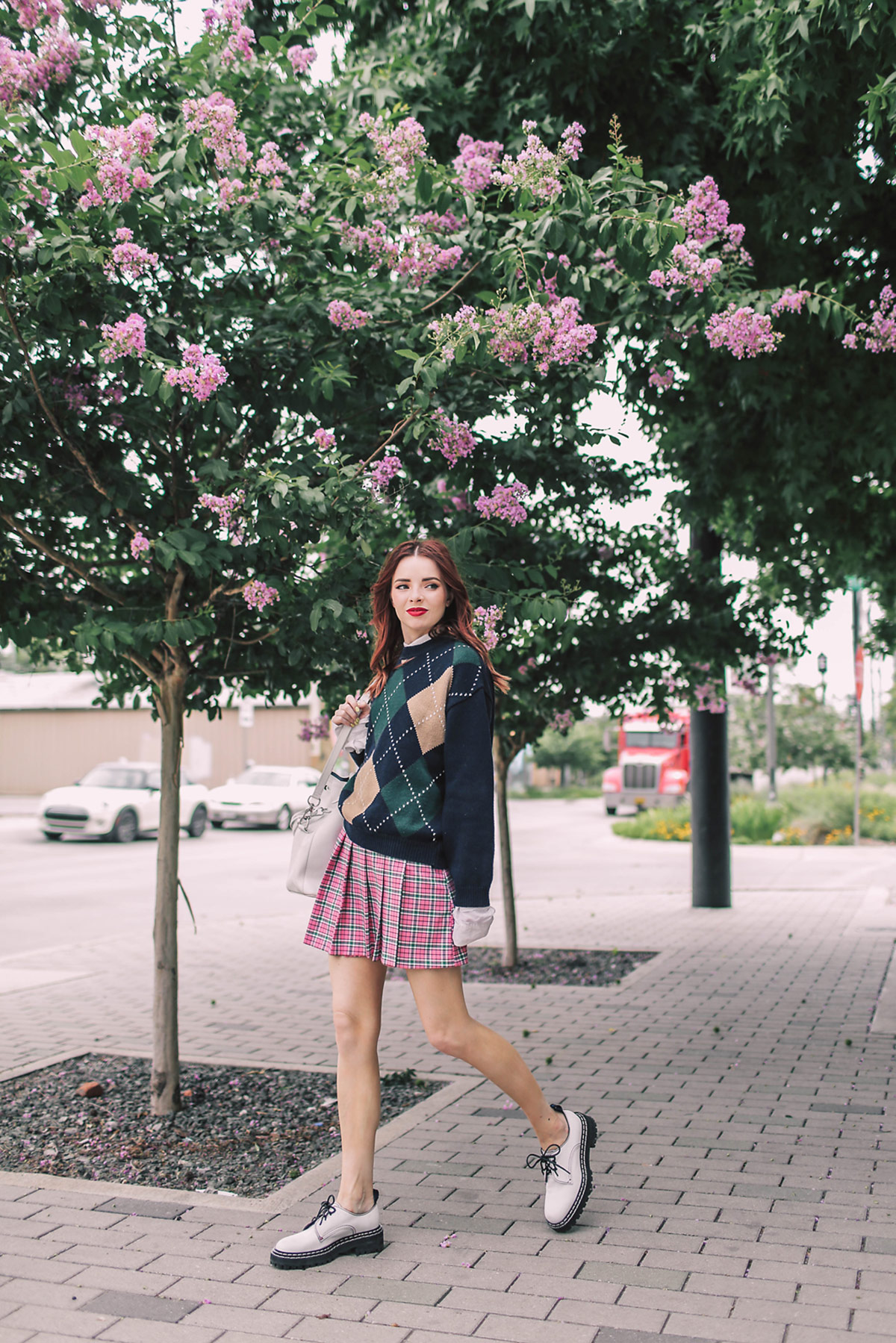 love that plaid pink kilt skirt so much! Perfect shoes as well. Great styling.