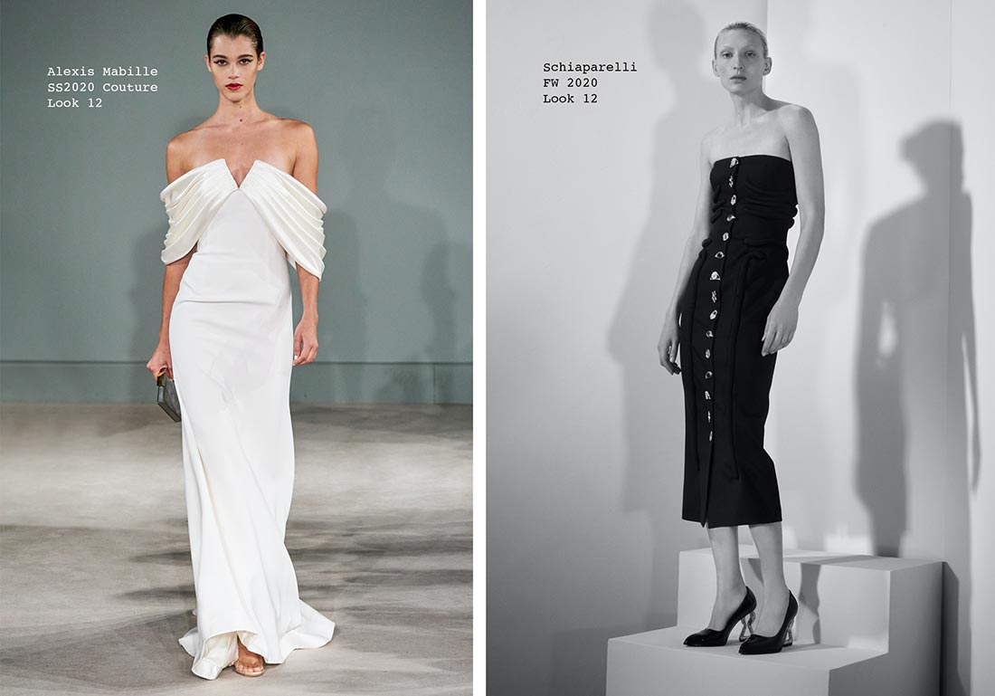 I struggled to find something current that I loved loved for Jennifer. Alexis Mabille does stunning couture and I think look 12 from this season would be beautiful on Jen and totally suit her style. I also loved Schiaparelli’s clever strapless dress with gold art buttons from FW 2020. What Daniel Roseberry is doing at Schiaparelli is extremely innovative and this dress would give her some major fashion credit, as well as show off her great arms!
