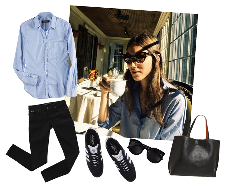 Elizabeth & James button down Black Skinnies Adidas Gazelles Adidas Gazelles Karen Waker Sunglasses Sunnies Reversible tote HTML Map