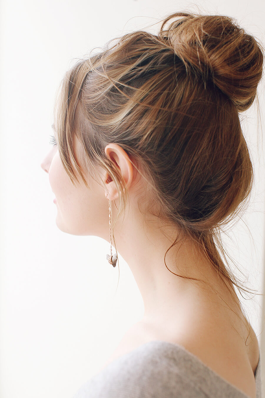 Carol wearing Jacquie Aiche floating stud earrings.