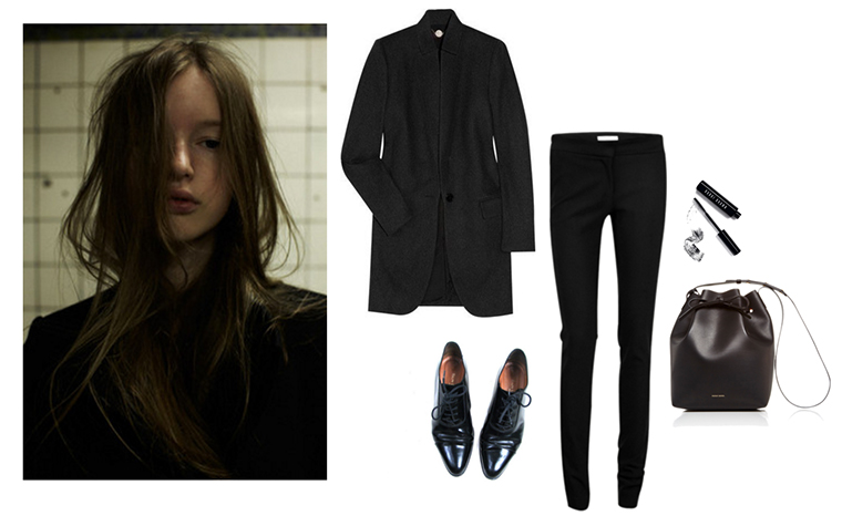 Blazer Trousers Oxfords Bucket bag Mascara Image HTML map generator