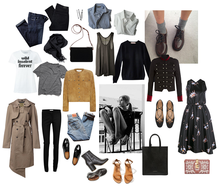 Rochas Dress Dolce clutch Lace up Flats Military Coat Trench Coat Trousers Tee Jeans Jeans Grey Tee Shirt Suede jacket Sweater Tank top Bag Stripe button down Sandals White button down Scarf Boyfriends jeans Oxfords Boots Tote Image HTML map generator