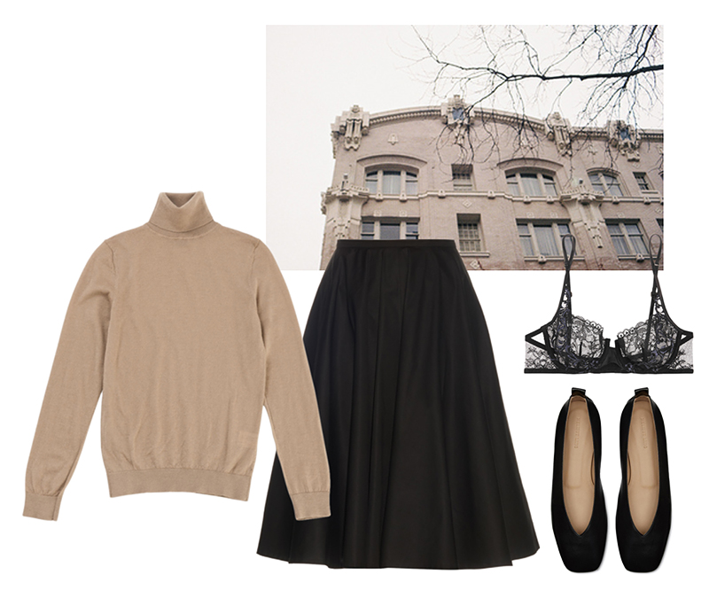 Turtleneck Skirt Bra Ballet Flats Image HTML map generator