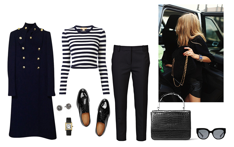 Military Coat Sweater Trousers Brogues Crocodile Tote Sunglasses Watch Earrings Image HTML map generator