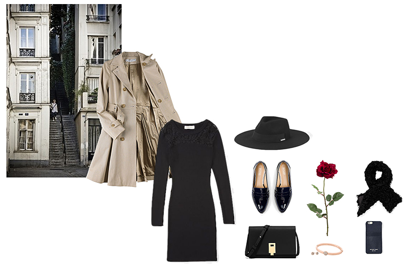 Trench Coat Dress Hat Wallet Bag Lamb fur scarf Image HTML map generator