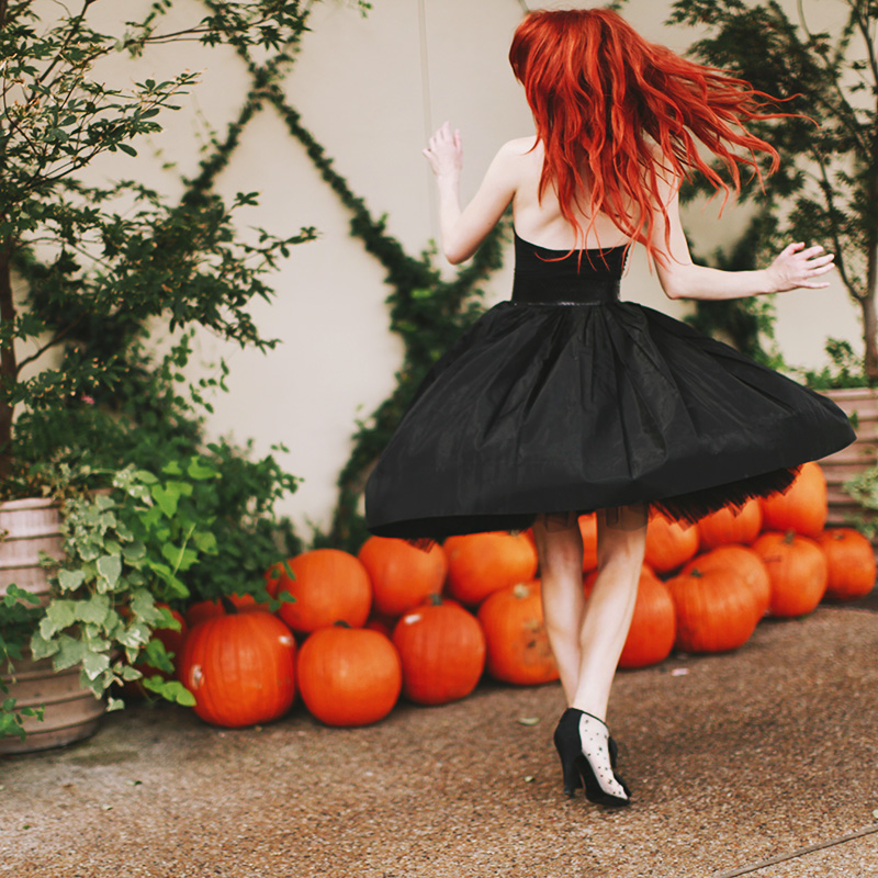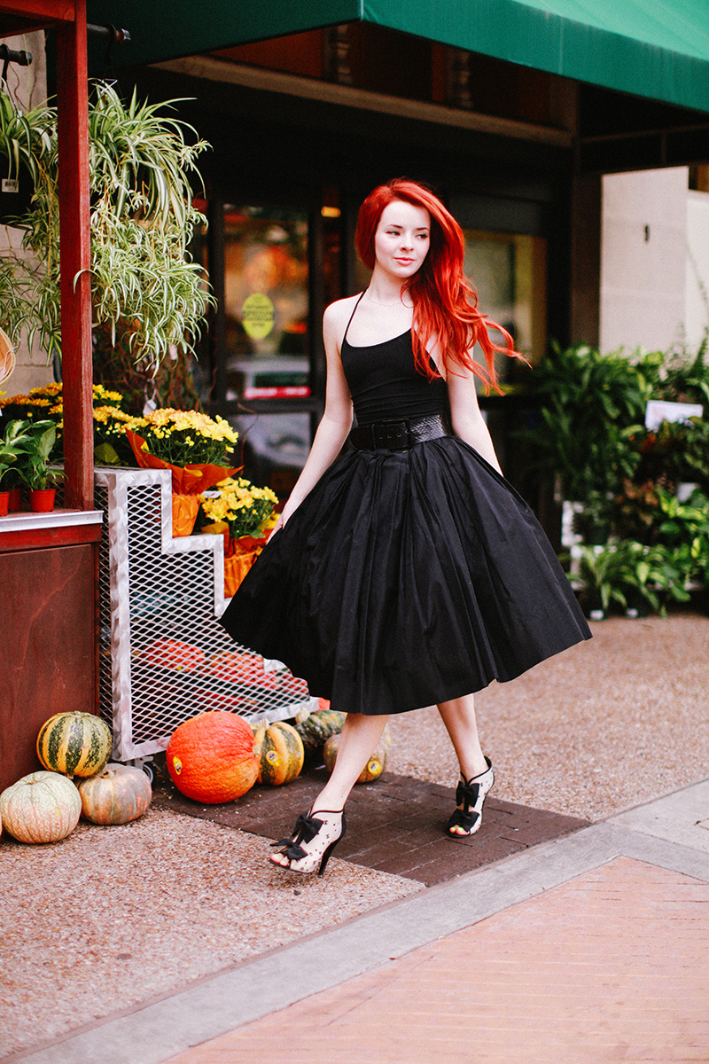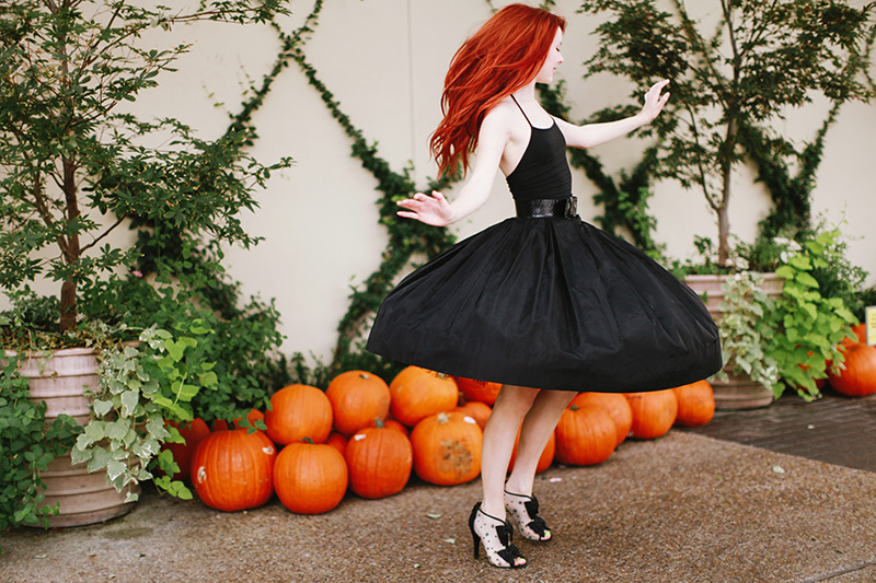 Wearing a 50s taffeta skirt I’ve had since I was 14 here. I bought this ASOS tutu to wear underneath to make it extra dramatic. Now I feel like a pumpkin! The booties are my beloved Chanels. Best shoes of all time!
