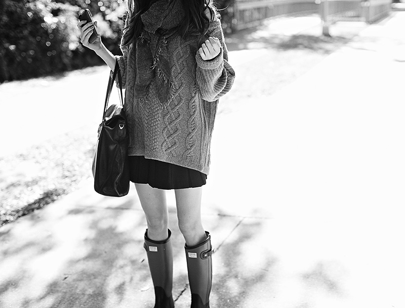 Shout out to the chihuahua Instagram crew ;) I love the boots I have on today, they are the Rag & Bone for Hunter boots ! Also wearing Rag & Bone sweater, pleated miniskirt, Barneys scarf, and Elizabeth & James bag.