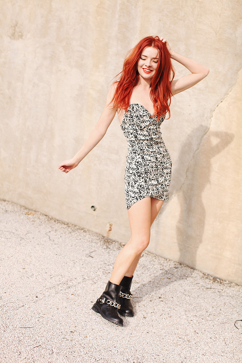 I think these boots are going to be the foundation of my wardrobe for a long time to come. They’re easy with jeans and rock tees but I’m not at all opposed to wearing them with a mini dress. The dress is from Again, thank you so much Eleanor!