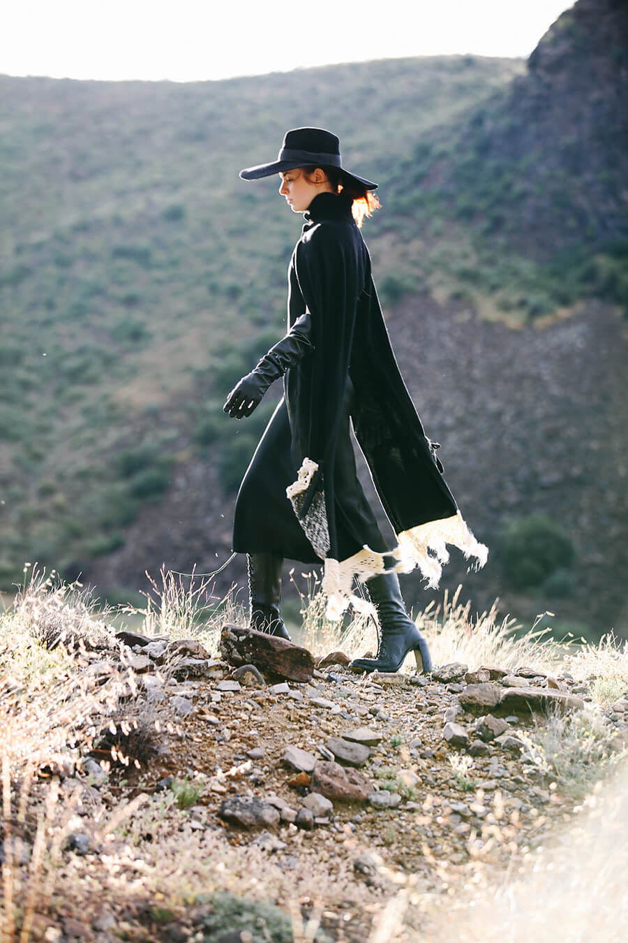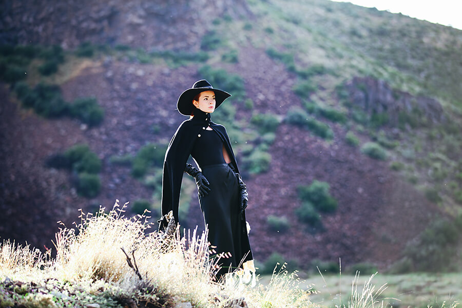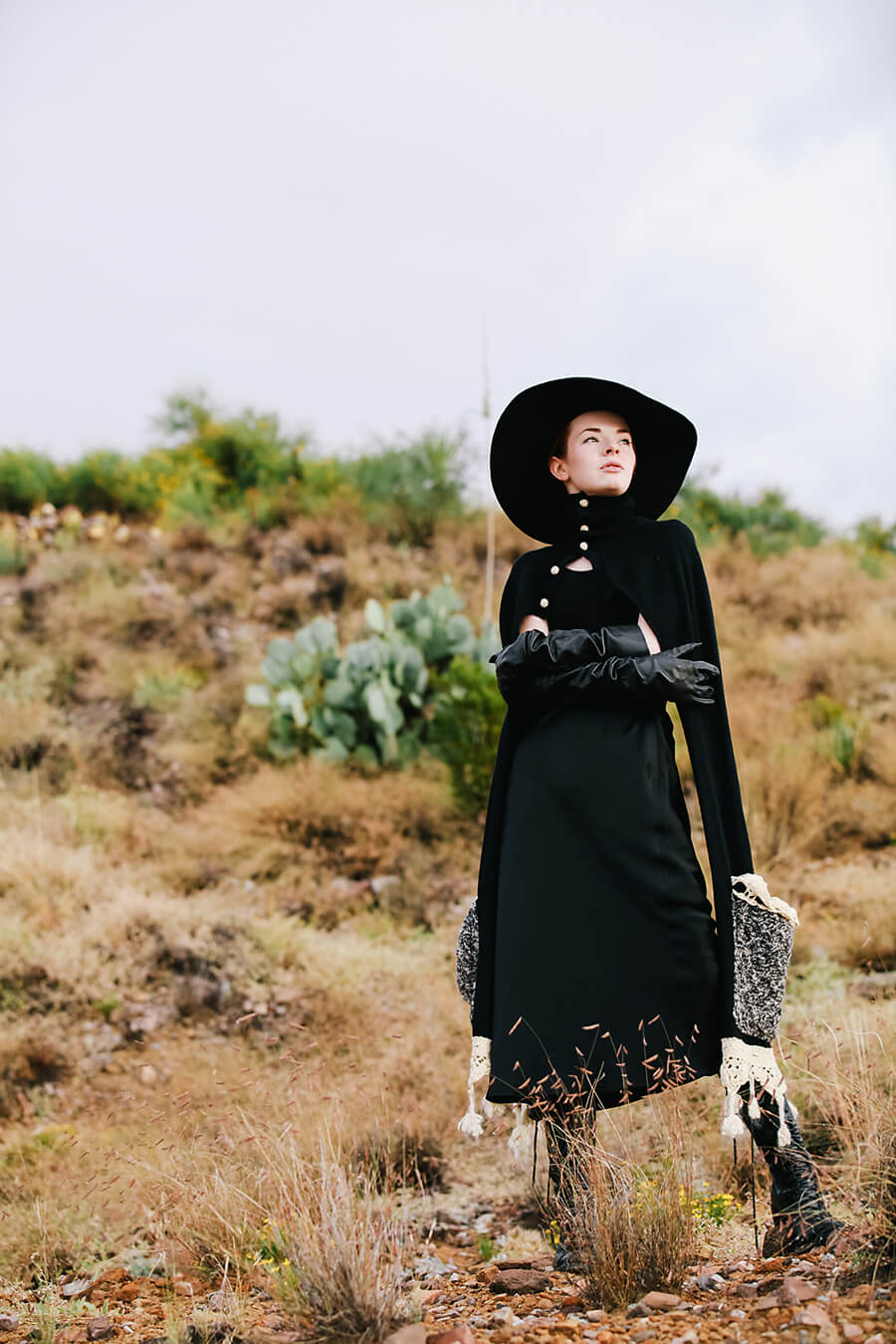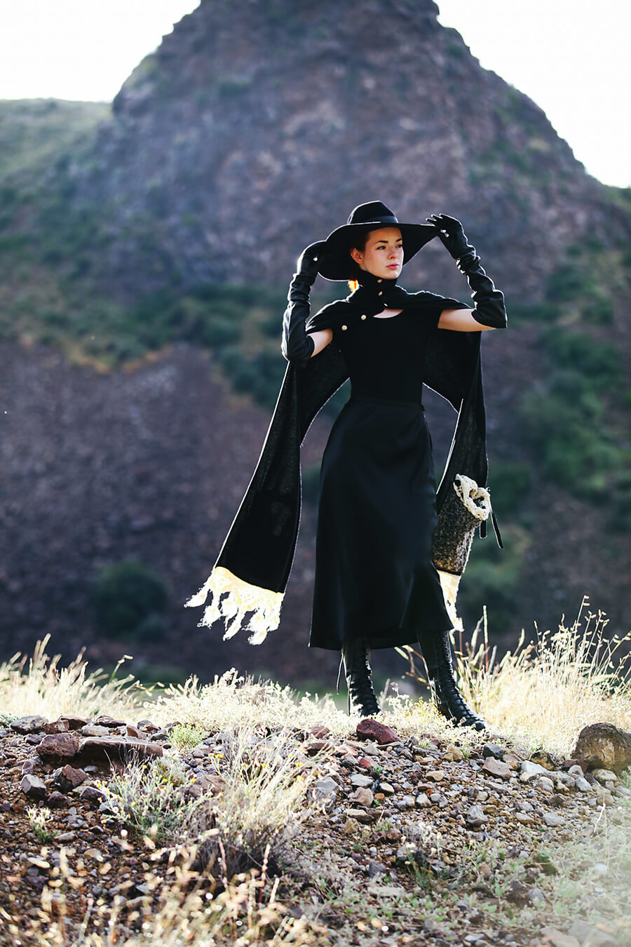 Happy Halloween! I’ve been waiting to share these Salem-esque shots from our trip to Cibolo Creek until today. I feel like the witch from Hansel and Gretel with this scarf and hat! God, that story always freaked me out when I was a kid because up until that point I had no idea that witches were also cannibals. I’m wearing my most favorite ever Ann Demulemeester boots from six years ago. I love these so much, the curved hooflike stacked heel of these boots really does it for me. Ann D still does some cool boots with this heel, they’re so good.