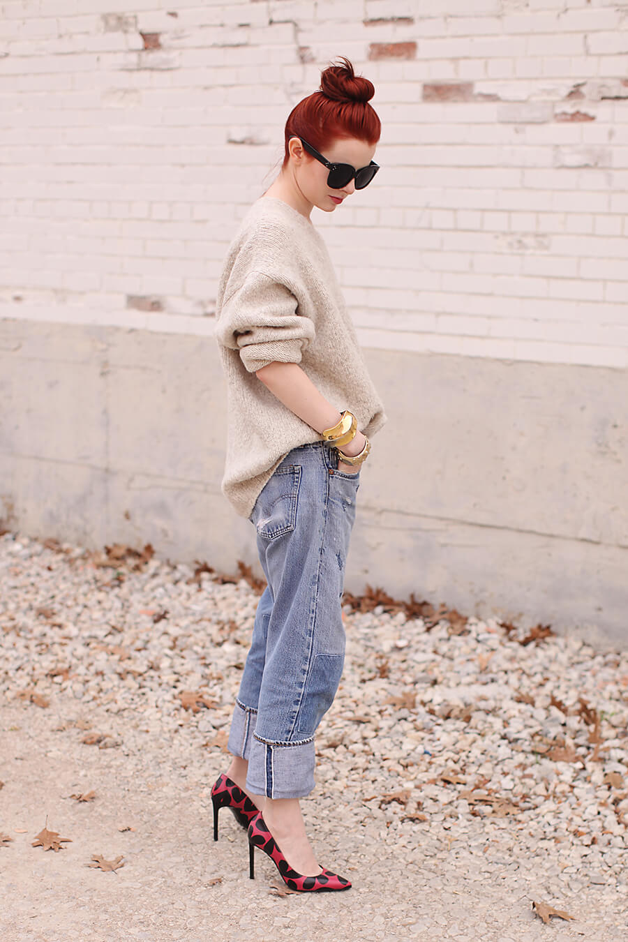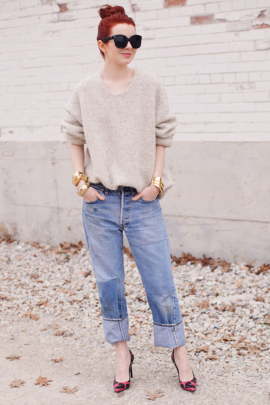 Yesterday running errands in vintage Levi’s, vintage DKNY sweater (similar here), vintage gold jewelry, and my new Saint Laurent pumps I snagged on sale!