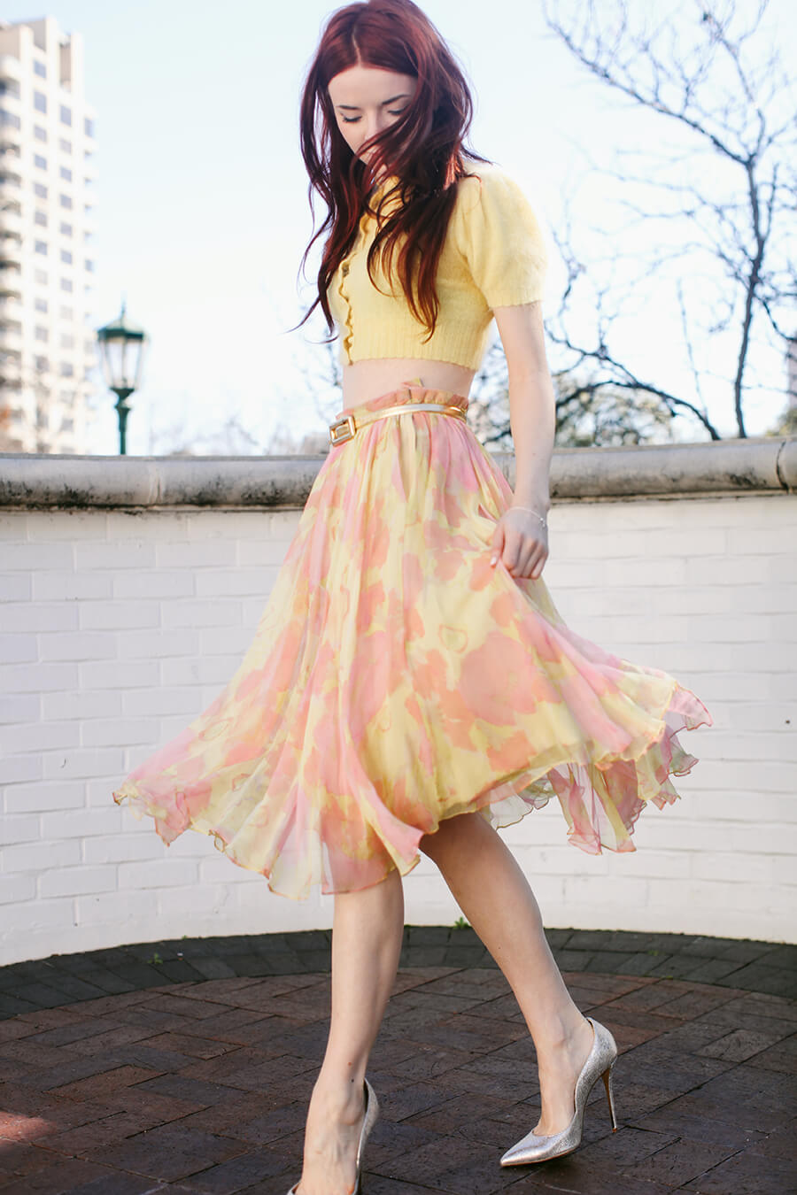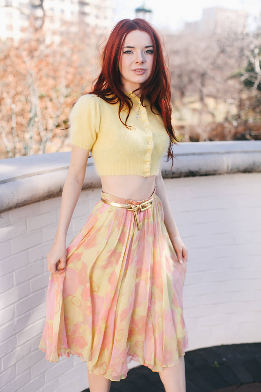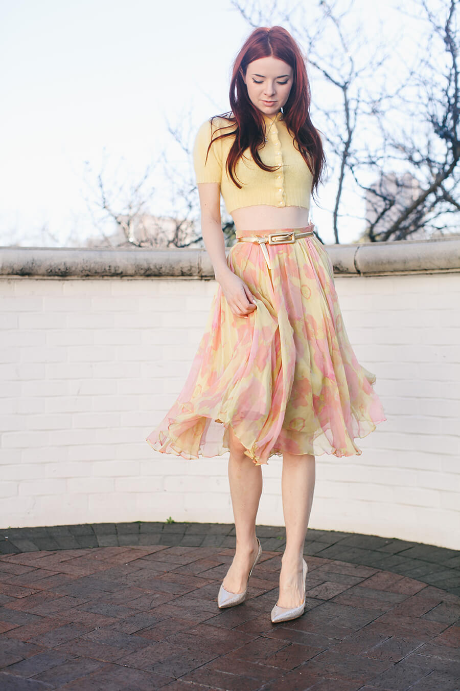 Wearing vintage 40s sweater and vintage 50s skirt with my beloved Oscar de la Renta pumps.