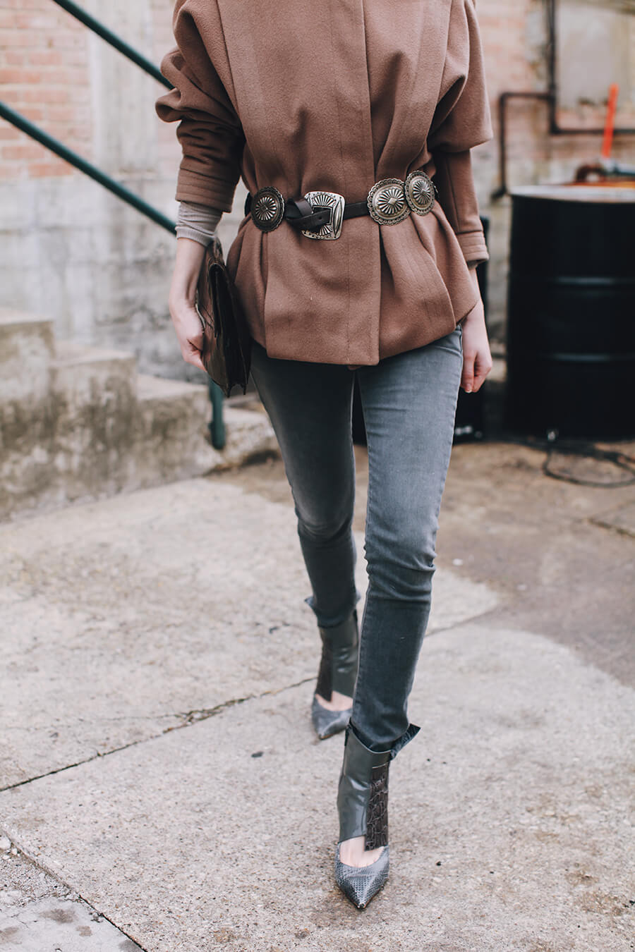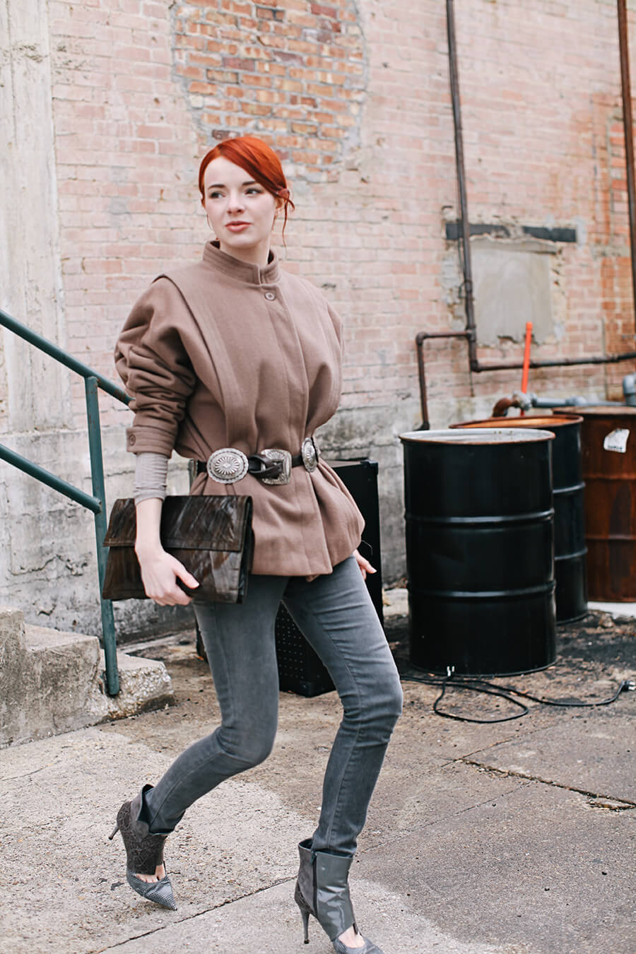 Taupe has been the color on my mind lately. It feels a little more luxurious than camel at the moment and has an 80’s vibe that I love. I was really inspired by the styling of taupe at the Ralph Lauren 2015 Fall show, and since then I’ve been dreaming of adding a few key taupey pieces to my wardrobe! I happened upon this amazing 80’s military inspired jacket when I was at Salvation Army last week. The jacket was $10 dollars but it was half price day so I got it for $5! What a steal, not to mention it has a Neiman Marcus label on the inside. I’ve been belting everything lately with my Ralph Lauren concha belt! It’s the Texan in me.