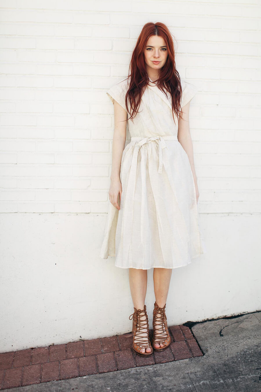 I’m newly obsessed with cult brand Thierry Colson after trying on this stunning dress from VOD Boutique. They have an amazing selection of his spring line, including lots of hippie blouses in a spectrum of candy colors with whimsical embroidery. This crisp ivory wrap dress was just my cup of tea! A very Grace Kelly feel to this dress.