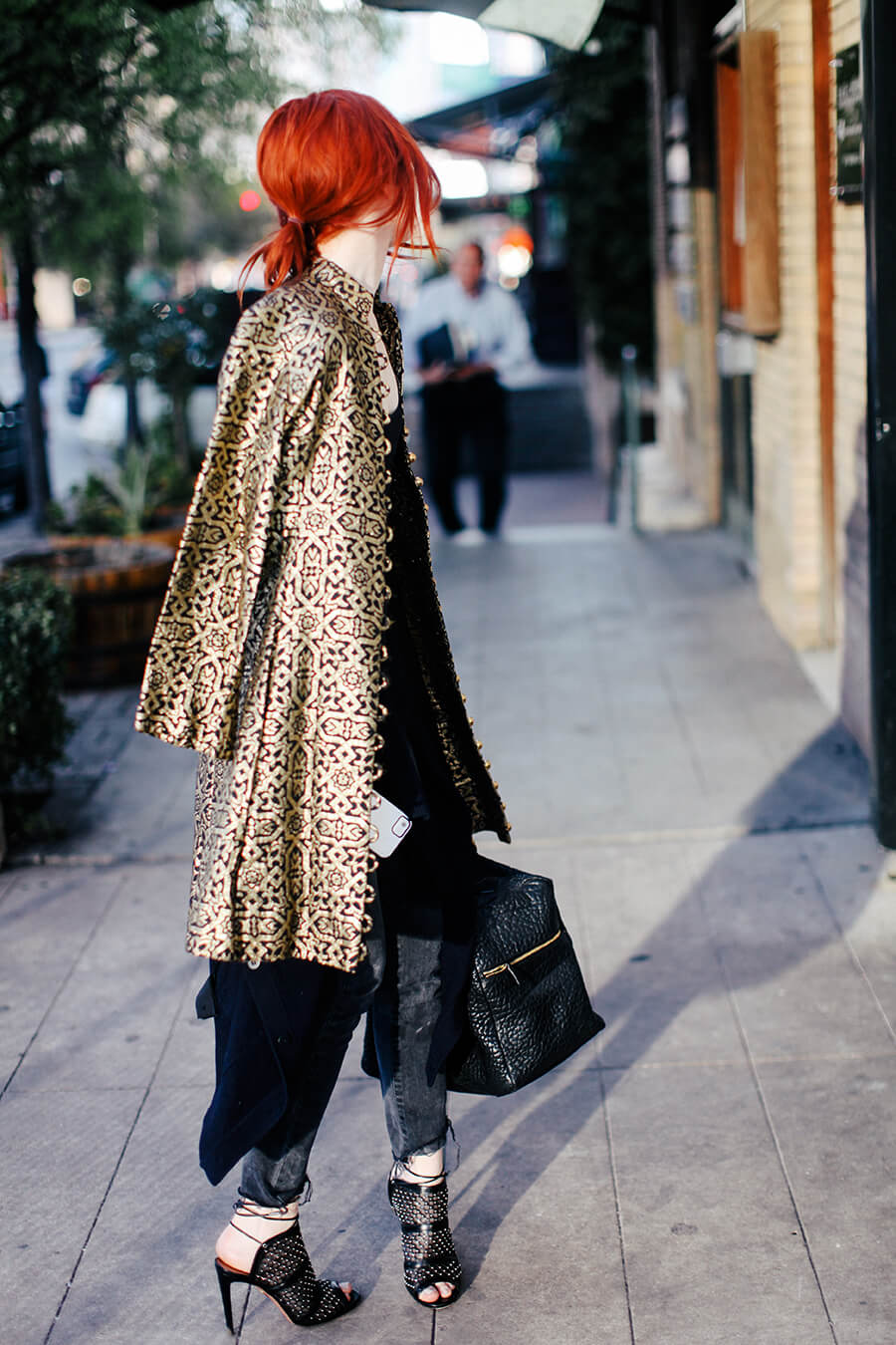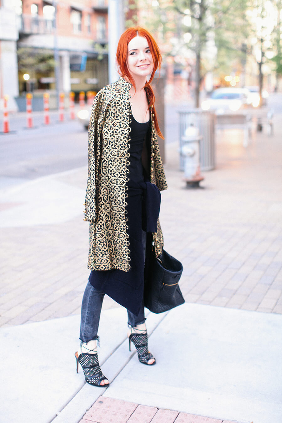I love a trip to Austin, post-SXSW insanity. I have skipped SXSW the past few years because I prefer a more low-key Austin experience! I was so happy to return to my favorite vintage shops and restaurants. I packed a lot of vintage for this trip, including this 70s Mr. Mort metallic brocade coat. I love the bell sleeves and dramatic keyhole buttons!