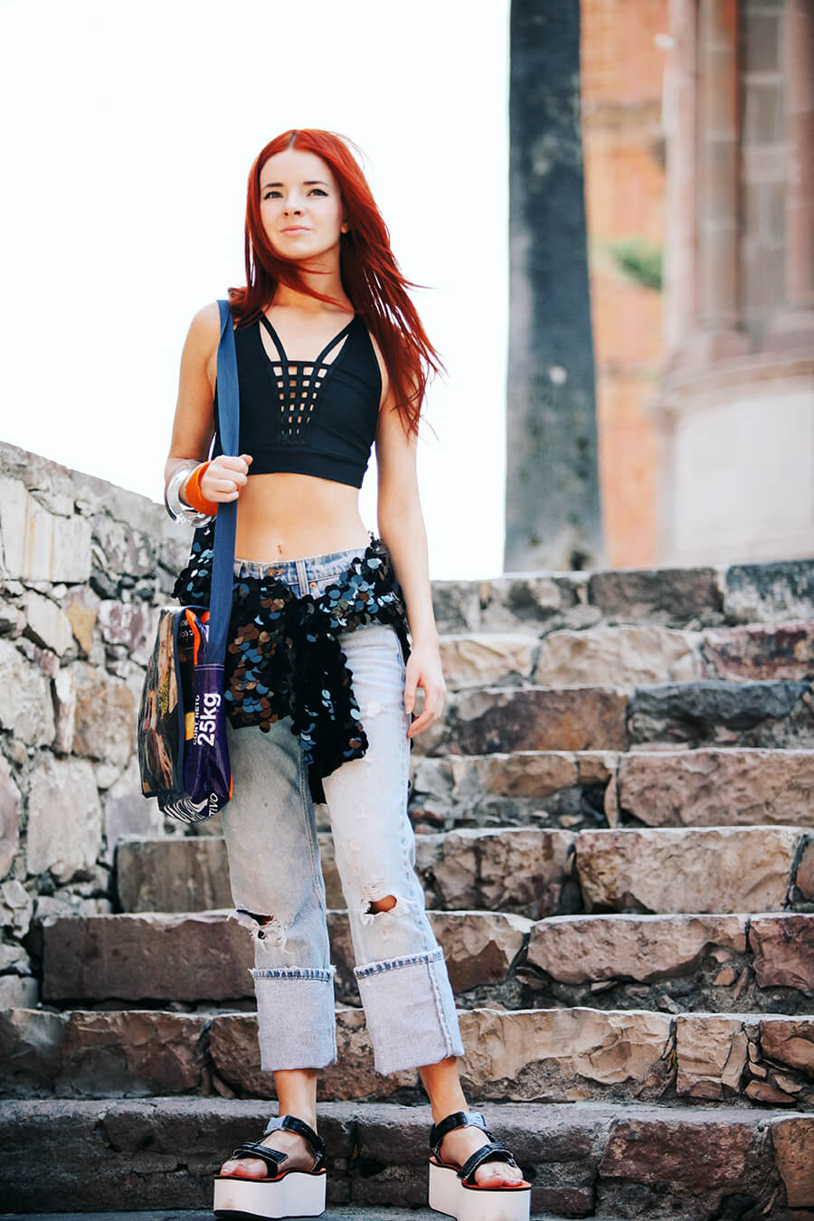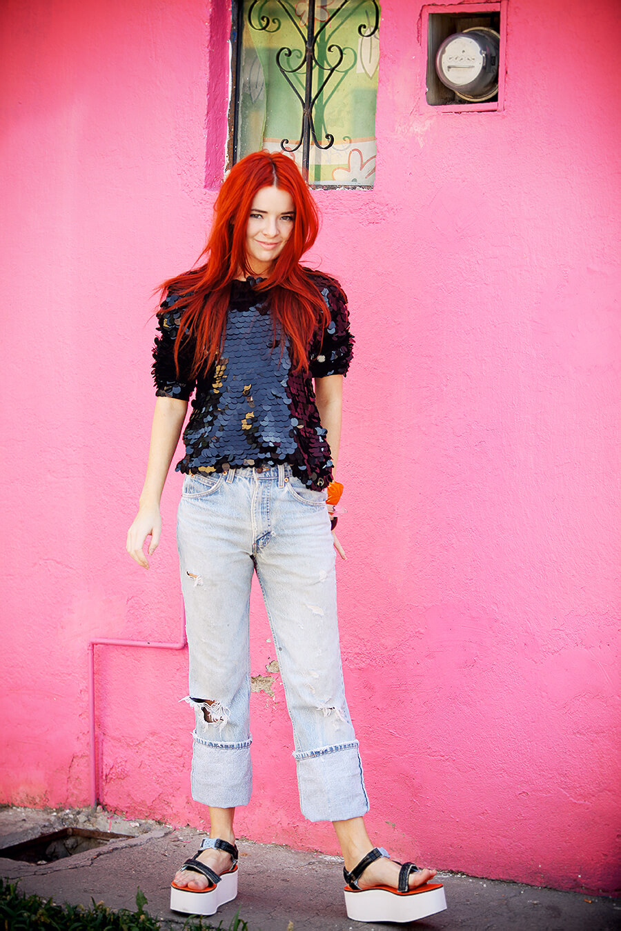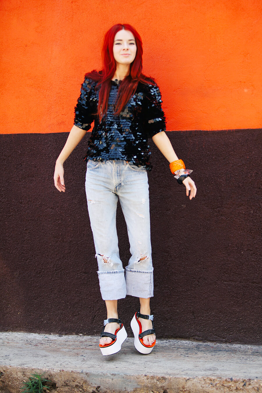 Hello from sunny San Miguel de Allende! We took a quiet afternoon exploring many hidden pockets of the city. I’ve been here many times but am always amazed by the endless amounts of beauty to discover here. The shoes I’m wearing were sent to me by Teva and Nastygal, I had so much fun styling these. I love flatforms. Pailette sequins, boyfriend jeans, and chunky lucite bangles seemed a fitting counterpart to these chunky monkey sandals. Can’t wait to share more of our finds while we are here! We are on our way to an abandoned silver mining town, I can’t wait.