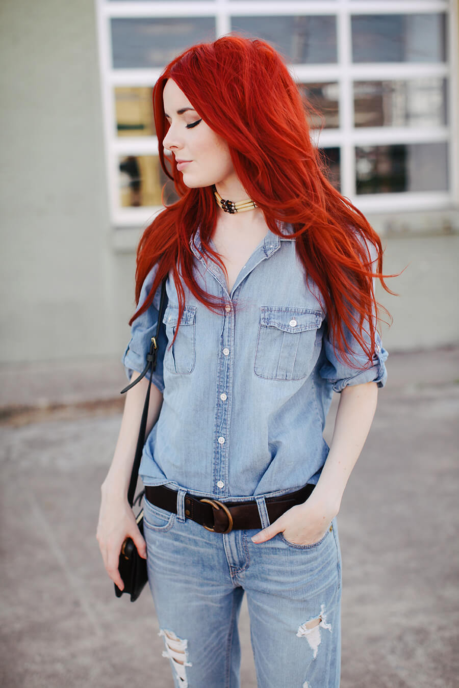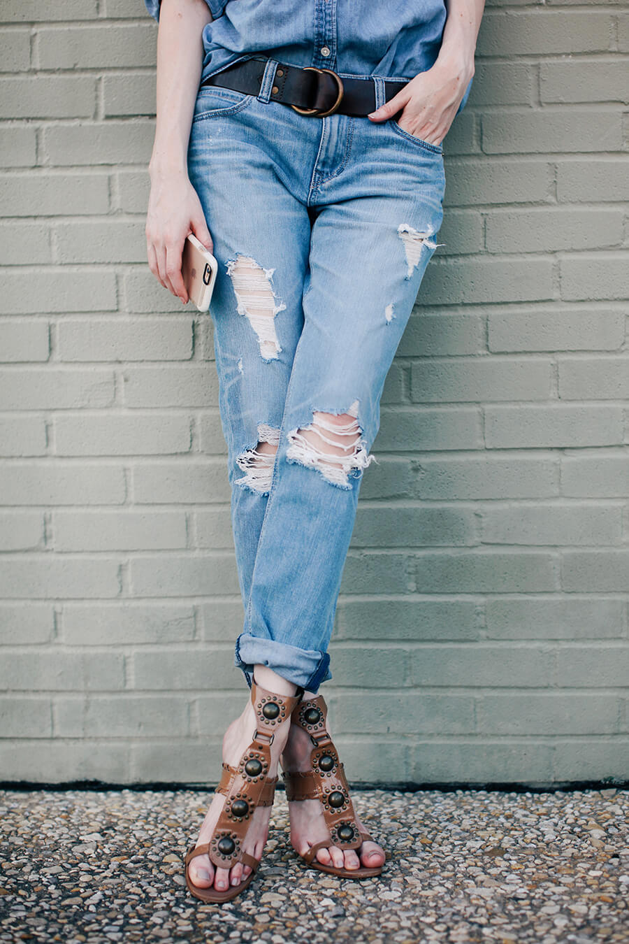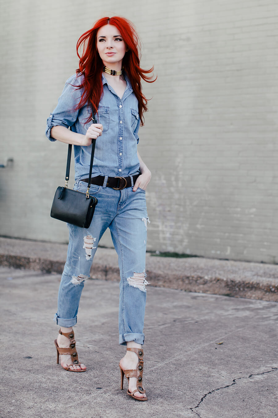 Denim on denim looks always appeal to my tomboy side. I always like the contrast of cuffed boyfriend jeans and studded strappy heels! Perfect weekend wear for this holiday weekend, we are prepping for a picnic tonight. Happy Fourth of July to my stateside readers, hope everyone is enjoying this beautiful weekend!