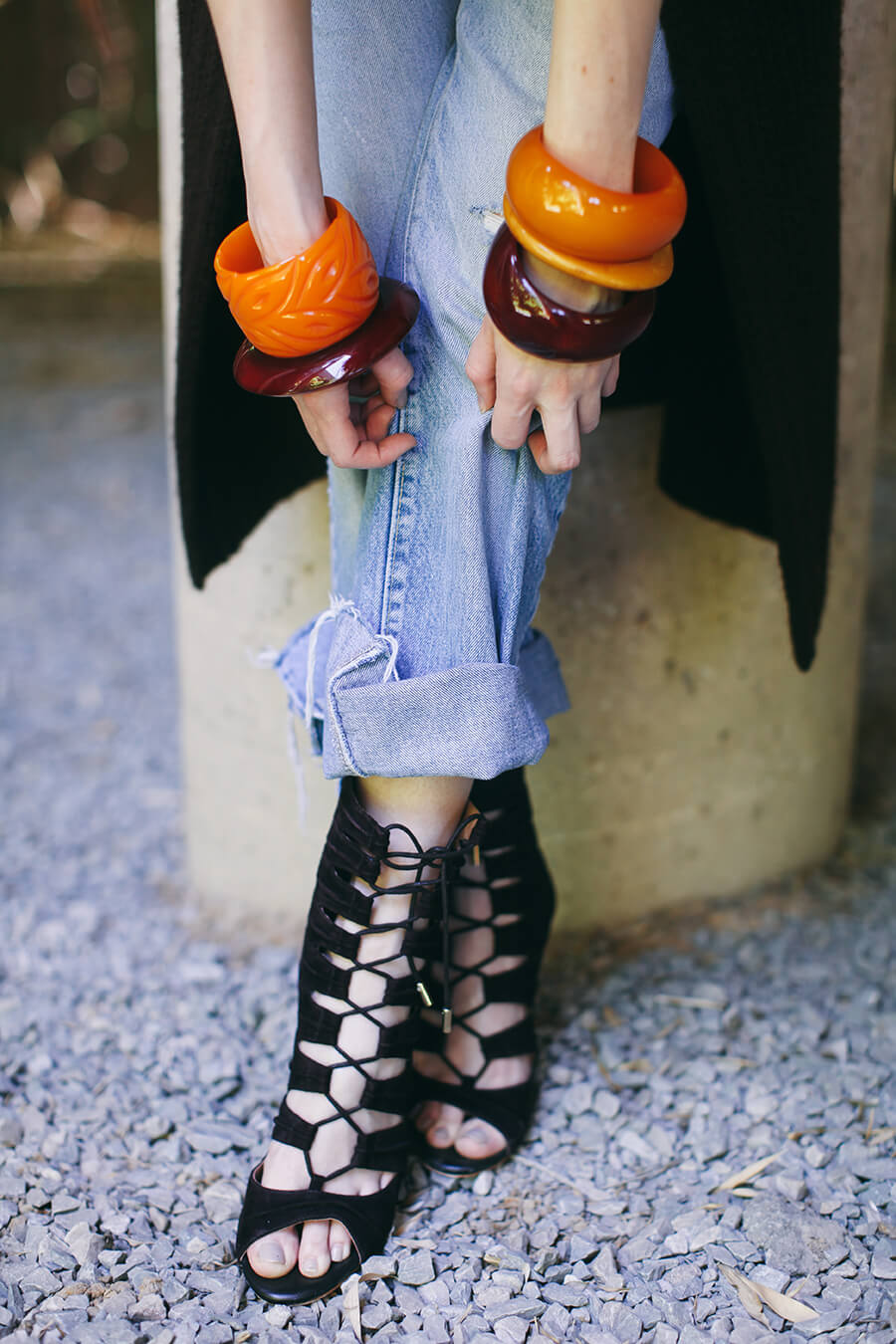 Lace-up heels are always my thing, and it is kind of hard to think of something these shoes wouldn’t look amazing with! I’ve been dying to bust out this Ralph Lauren vest for a while. It is way too hot to wear it any time soon, but I loved styling it with a chunky belt and bakelite for the upcoming cooler months.