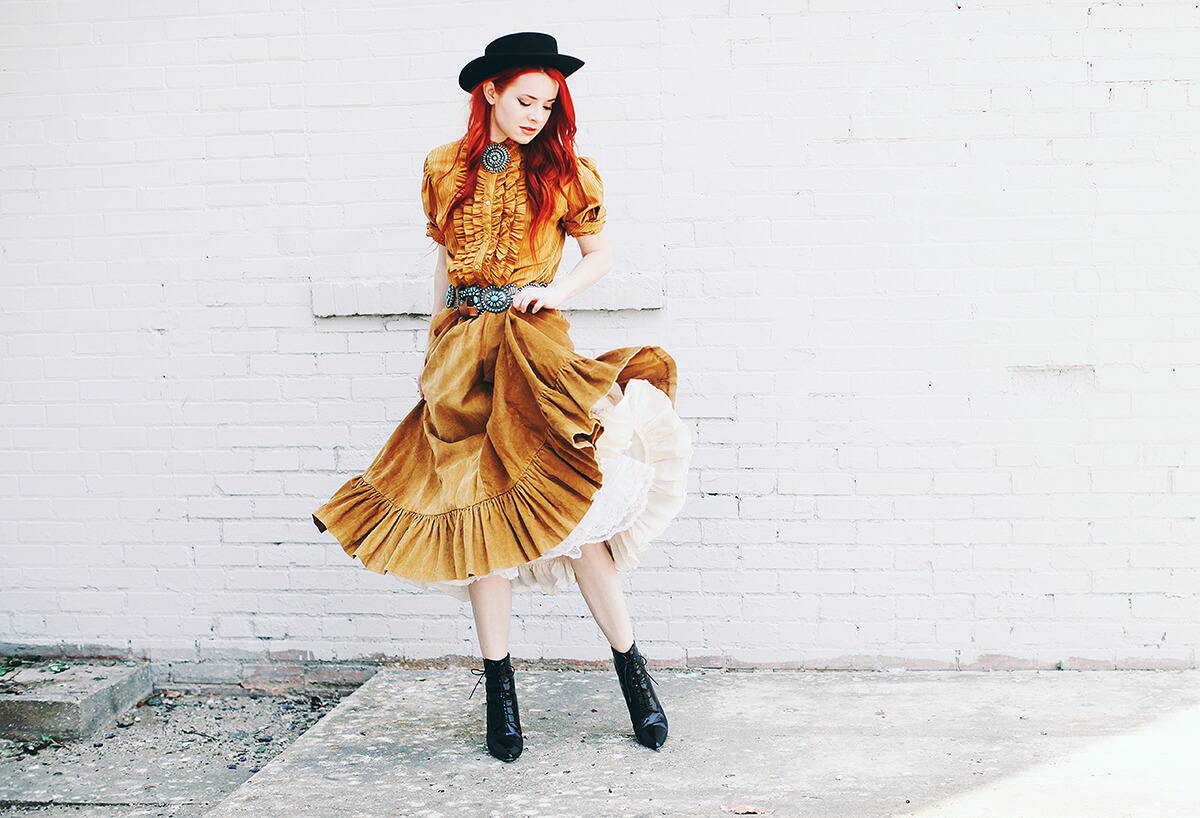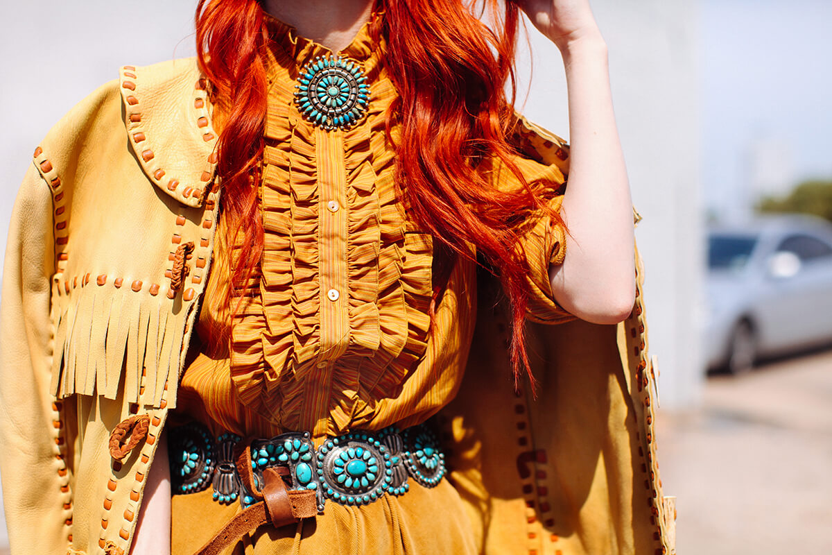 Collecting vintage in Texas, I come across so many amazing western pieces and turquoise. I love to go over-the-top with this look: petticoats, brooches, granny boots, and concha belts. So much fun styling and shooting this look!