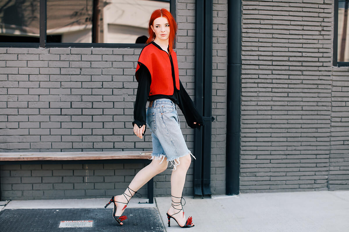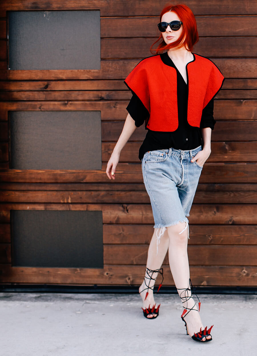 I’m wearing some vintage Levi’s I cut off into long shorts recently, I didn’t know if I would like how they looked at first. Now I actually really like them! I’m wearing them with some super witchy Manolo heels I scored on eBay a few years ago. Seriously some of my favorite shoes ever.