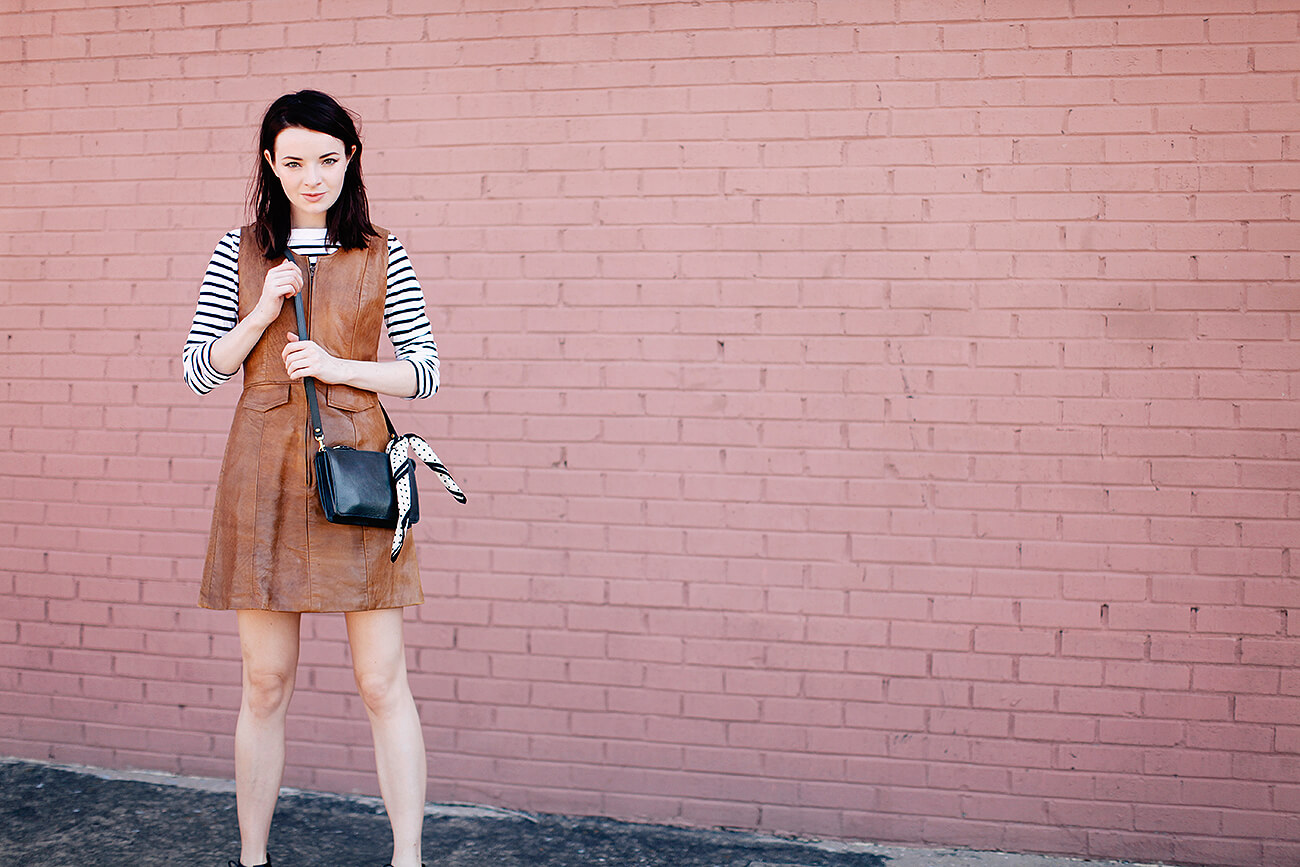 While I was in New York last week, I went to Beacon’s Closet in Brooklyn and picked up this amazing vintage leather shift. Based on the zippers and structure, I’d say it is from the early 70s. What a great find and such a good piece for easing into fall! I wore it over jeans and with a poet blouse underneath earlier this week as well.  I love when I love a vintage find so much I have to wear it for a few days non-stop…