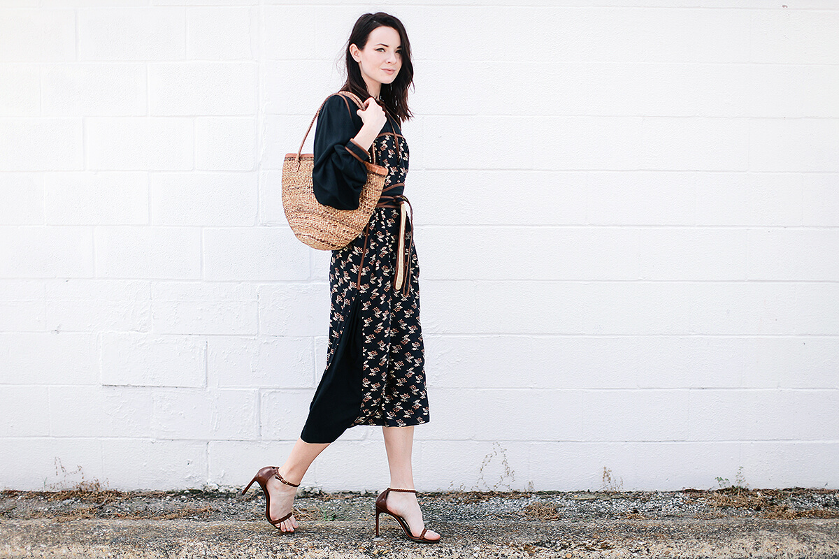 This dress is a recent vintage find, definitely getting me into the mood for fall! I love the obi belt and poet sleeves. Wearing a vintage peasant dress, Stuart Weitzman Barebraid heels, and a straw tote from Urban Outfitters.