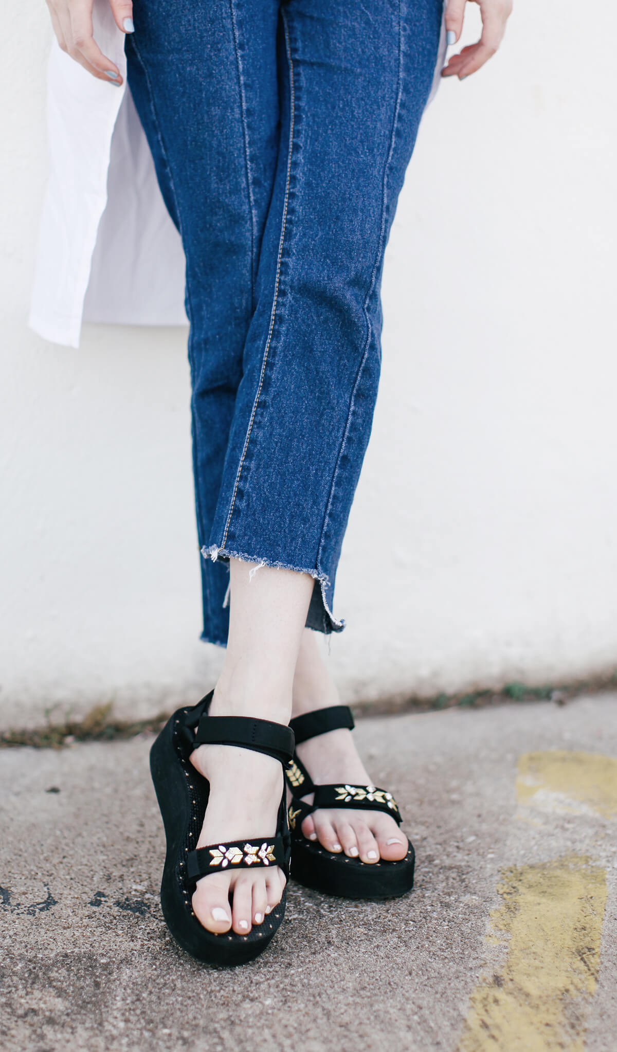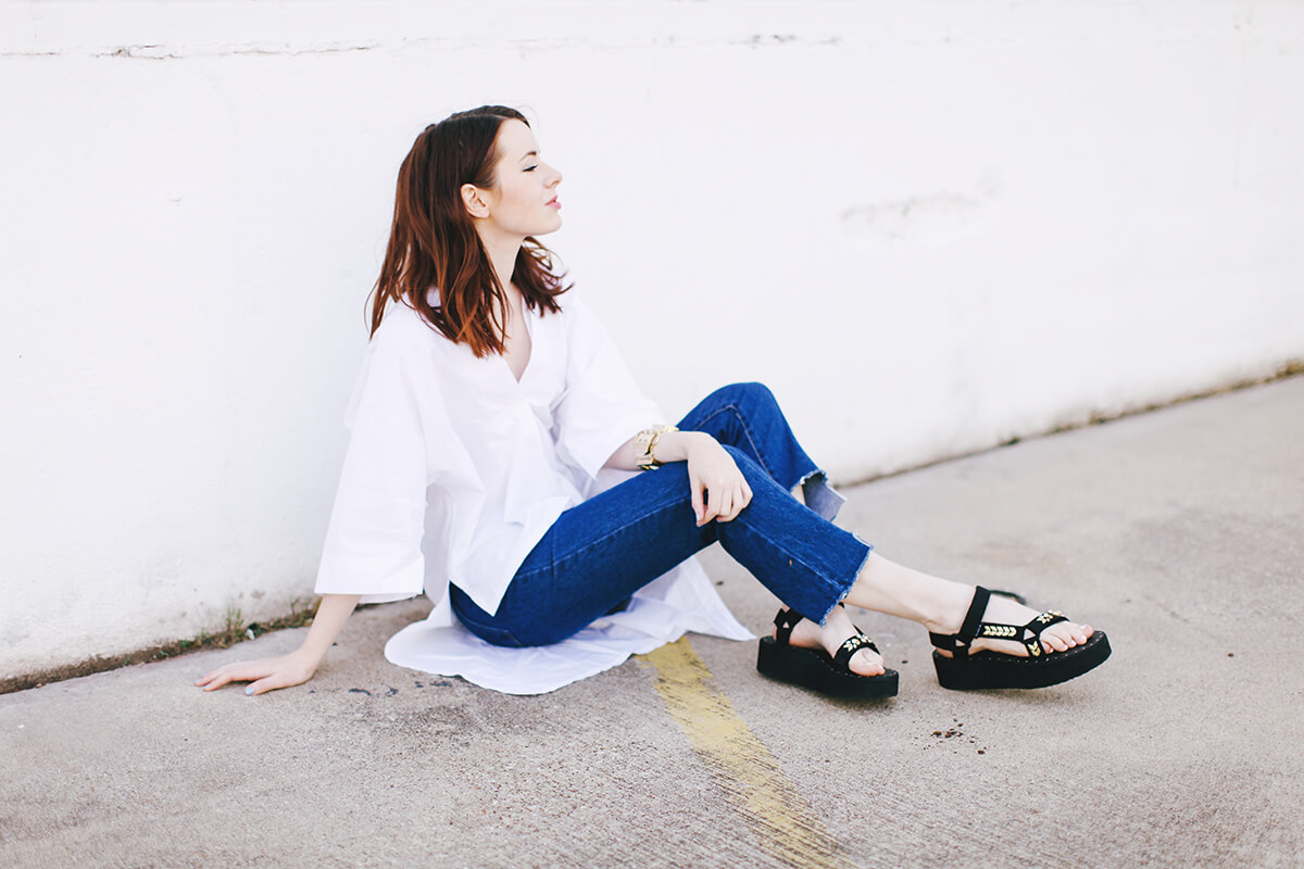 I’m guessing that like me, a lot of you are major fans of HonestlyWTF. Their site is a daily stop for me when I’m looking for inspiration in the morning. I’m always referring to their site and Pinterest boards for DIY and interior direction! It was love at first site when I saw their collaboration with Teva. These flatforms I’m wearing are a customized DIY from the HonestlyWTF x Teva kit! Each pair comes with a DIY kit including Swarovski crystals you can apply yourself. So cool, congratulations to Teva and HonestlyWTF on an amazing collab! So excited to wear mine.