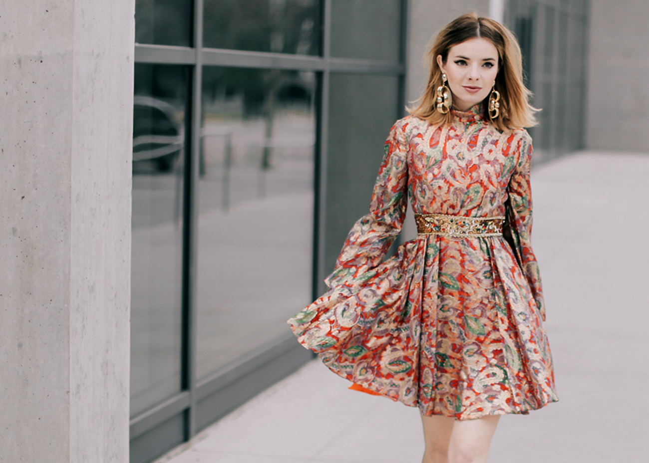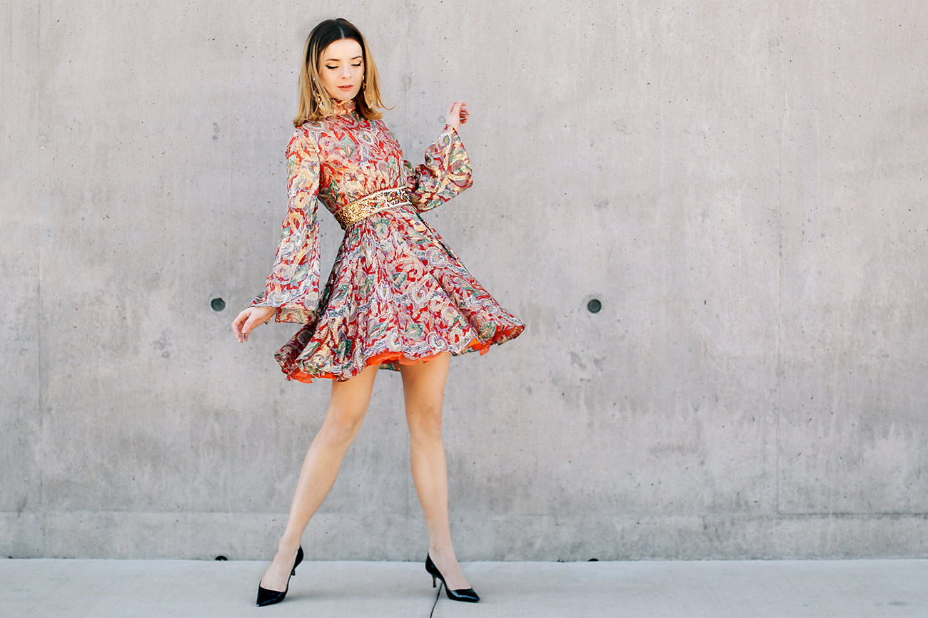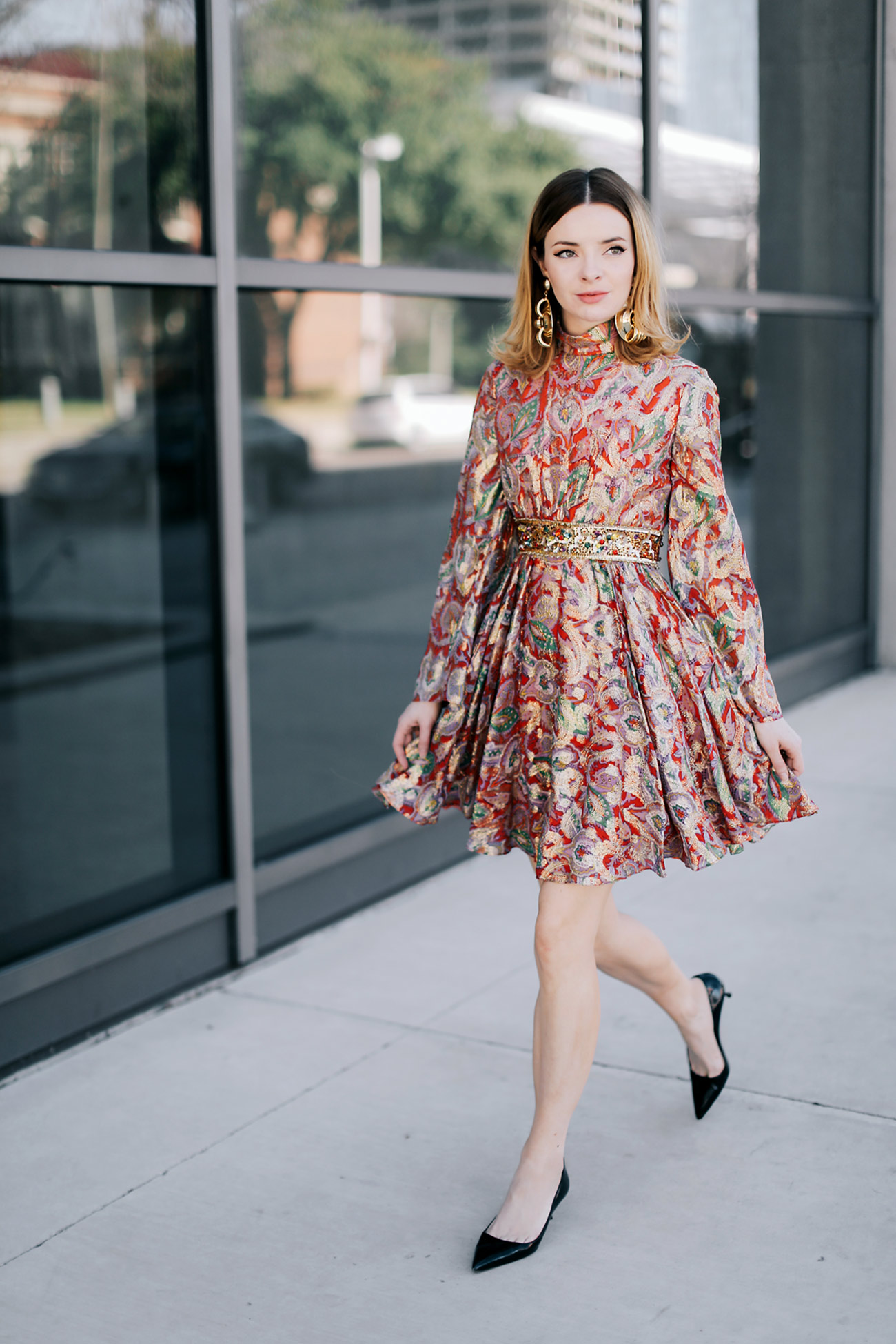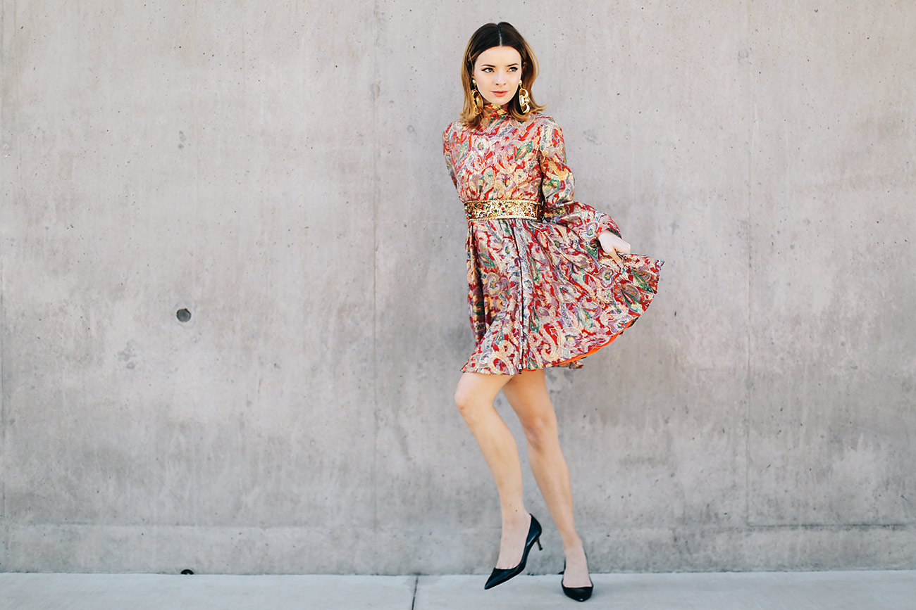 Adore this look so much on you! I can definitely see why you’ve been feeling the sixties so much – the era works so well with your style. That dress has so much LIFE to it! So decadent – and paired with basic kitten heals is perfect. Gorg!