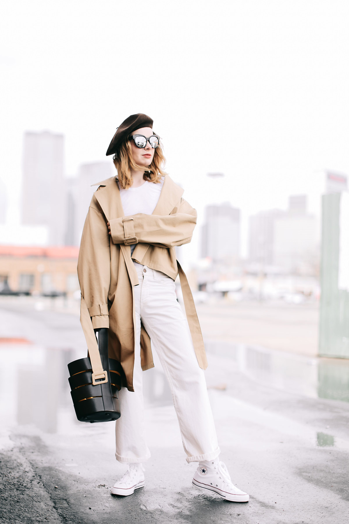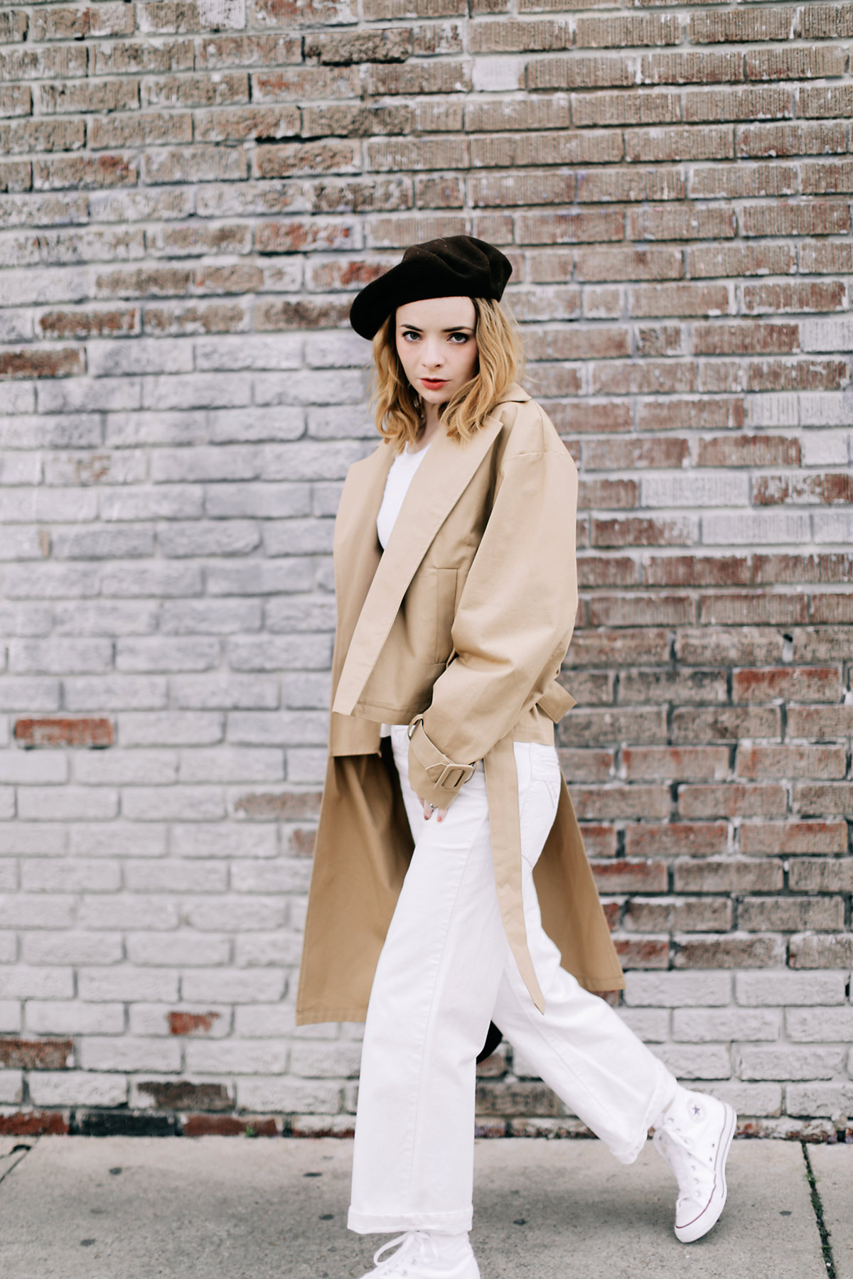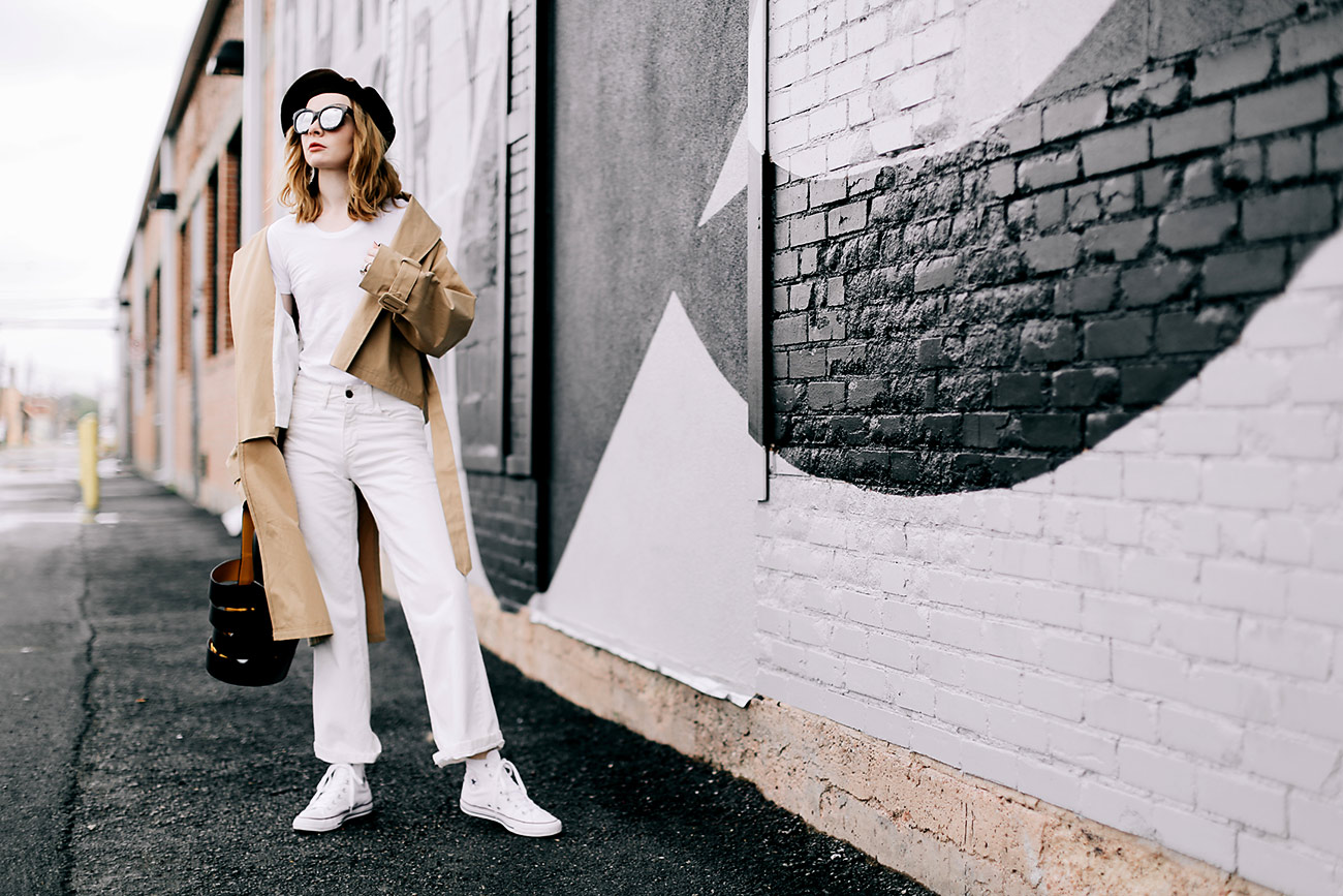 All white & a trench coat. Spring uniform! Thanks