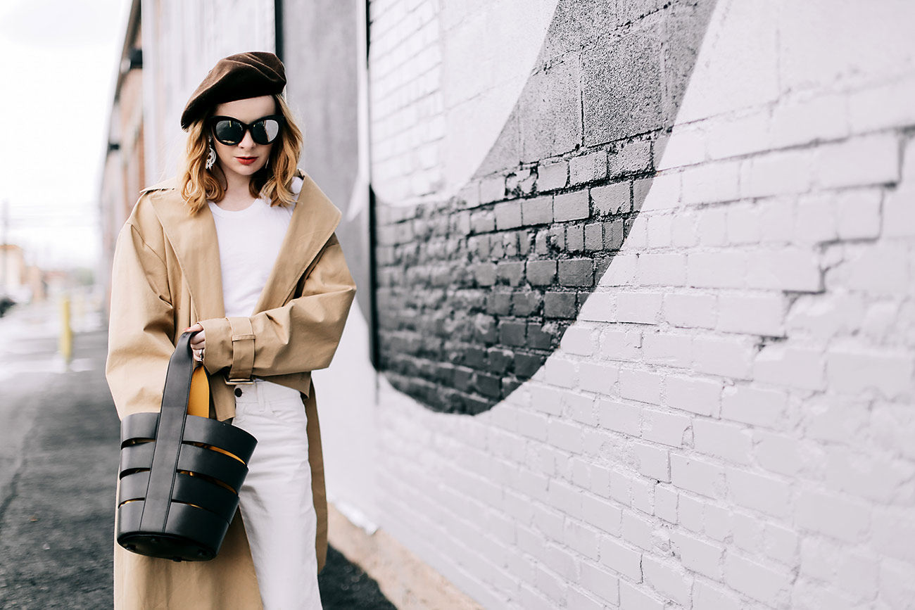 such a super cool look. i love those pants and the trench!