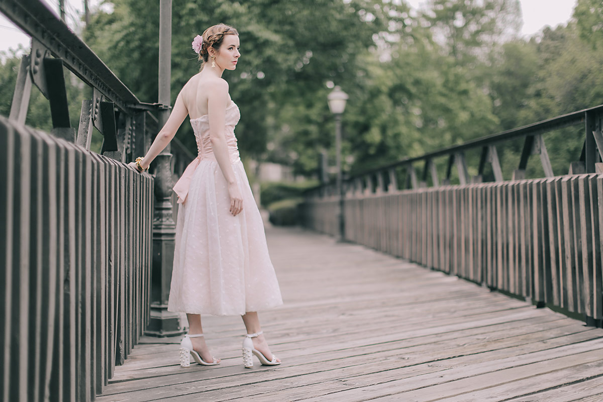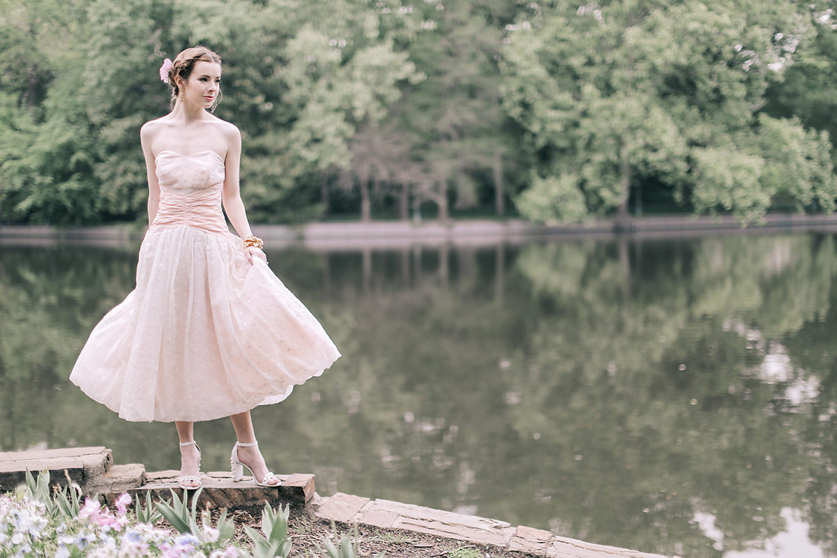 The blush tone to this look suits you perfectly. I’m a huge fan of vintage and can’t wait till we see your wedding photos. This 50’s dress is a favorite silhouette of mine , I love ❤️ the shoes and dress together , great styling !