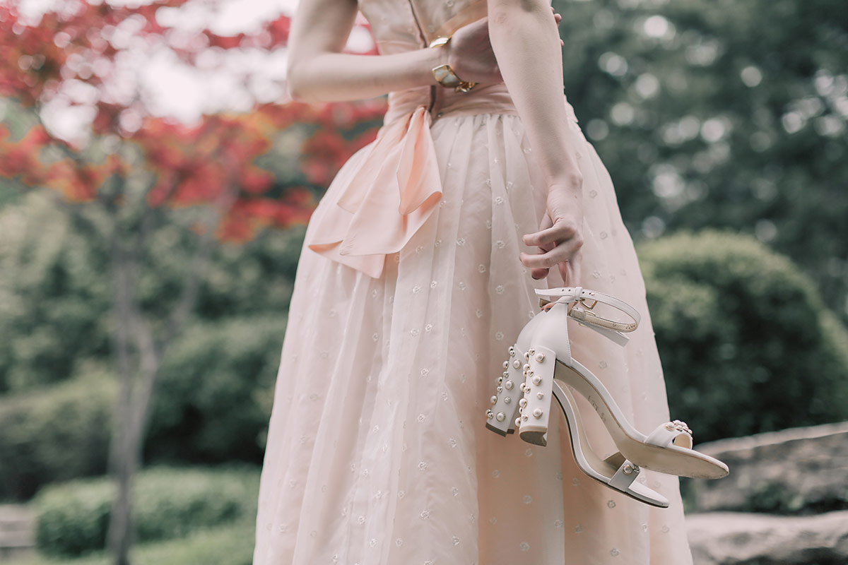 Oh, I’m at the exact same stage! Looking at wedding dresses was easy, I’ve decided to design my own, and I knew pretty quickly what I wanted. But the shoes turned out to be really hard to find! Love the pearl details on these, and the heel looks comfortable enough. They look great with the light pink hue on the dress.
